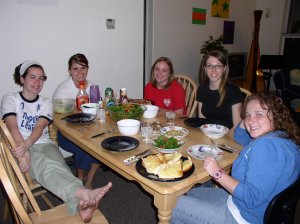 I was 19. I was just returning to BYU for my second year of college. I was living with my bestie Adrienne with our crazy roommate who wore gloves all the time and never wore the same pair of underwear twice. This is me and Adrienne’s friends (from Kansas) at our apartment having lasagna. Adrienne is taking the picture.