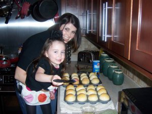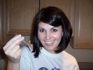 I know your wish! I know your wish! Yes, your hair is adorable and I love the hidden blonde streaks. Your hair is like you…so pretty and sweet with hidden spice and spunk!What’s up with Ellie’s face in that one pic of the two of you? She looks like she’s about to seize up or something! I’m sure it was the yummy anticipated goodness of those rolls and they were to die for (but thanks for sparing all of us that heavenly hardship!)Where o’ where is Kris Kringle? Make sure he doesn’t carry too high or pep will think he’s incognito pregnito!!!!! LOL!