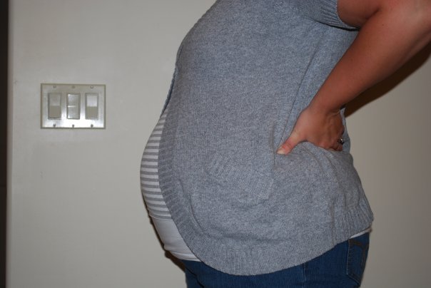You look so cute! Yea for only 7 more weeks! Your letters to her are the best. By the way you are not huge.P.S. I need your list for the shower!!!