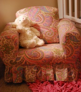 August 26, 2009August 27, 2018micciandjazz3 Comments on A recent find… A recent find… I found this little paisley rocking chair at TJ Maxx for a STEAL. It looks perfect in the baby’s room. She will totally love it. More nursery pics to follow {eventually}. Share this: Click to share on X (Opens in new window) X Click to share on Facebook (Opens in new window) Facebook Like Loading... Related