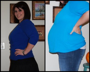 Alright let’s move on to that picture up top. *Please let this be my last pregnant photo* Left side, 5 weeks pregnant, right after we found out. On the right side, about ten minutes ago, huge huge huge. Yes, I cropped out my head. Surprise. Deal with it. I remember taking that first picture and making Jazz take a few different ones because I looked so fat or my head was weird or my chin looked chubby or whatever. WHAT WAS I THINKING. I looked awesome. I have cheek bones! And a waist! And nothing about my outfit has elastic! Oh, the good old days.