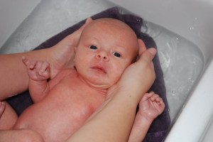 Ahhhhh… I love bathtime. When Ryan walked by he said, “That's her baby? She does NOT look she just had a baby.” So, looking good, Micci!
