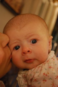 You smile at me all the time now- and on New Year’s Eve you learned to giggle. You can also use your tiny little baby legs to stand up on my lap, and you love to practice your skills. Probably your greatest recent development is your chatter. You have found your sweet little voice and you coo when when talk to you- we go back and forth discussing important things like food and baths and shoes. You and I had a moment this week that I will never forget as long as I live. It was late one night, I had just finished nursing you before bed, and you stared at me with your bright blue eyes. You smiled your great big gummy smile and we had a conversation for a few minutes, just the two of us. I felt so connected to you, so loved and so grateful for all of the joy you bring to my life.