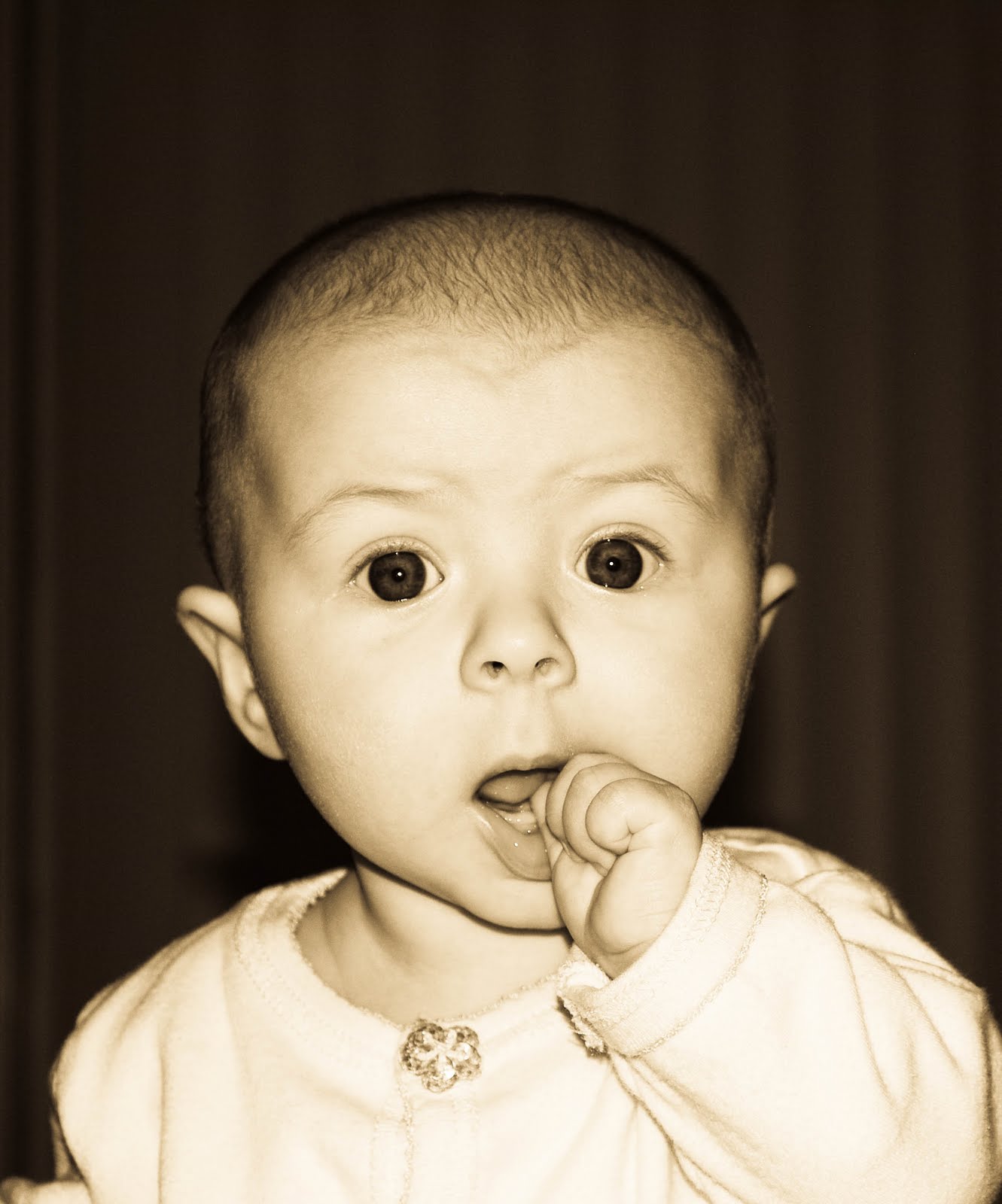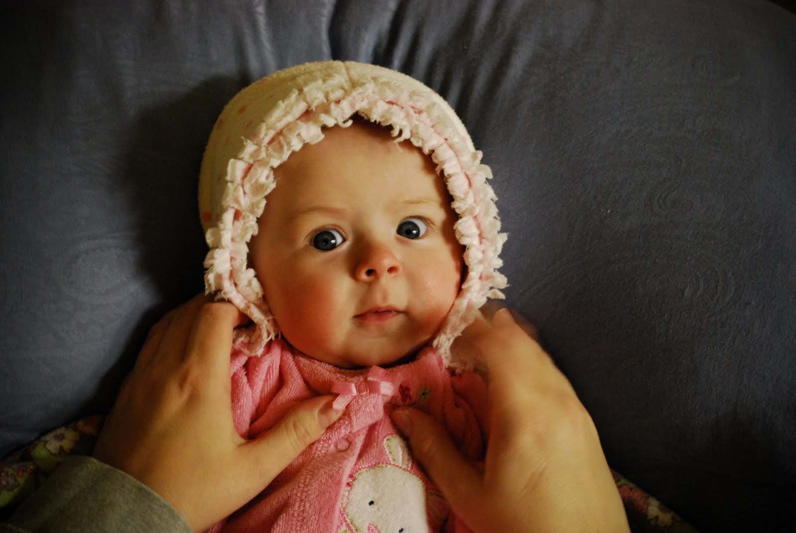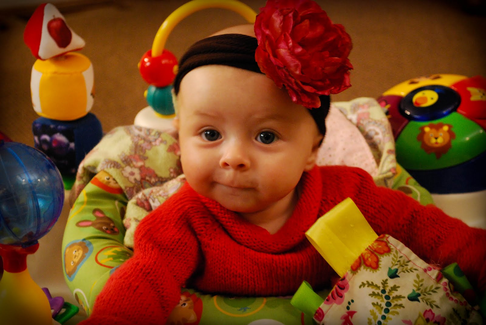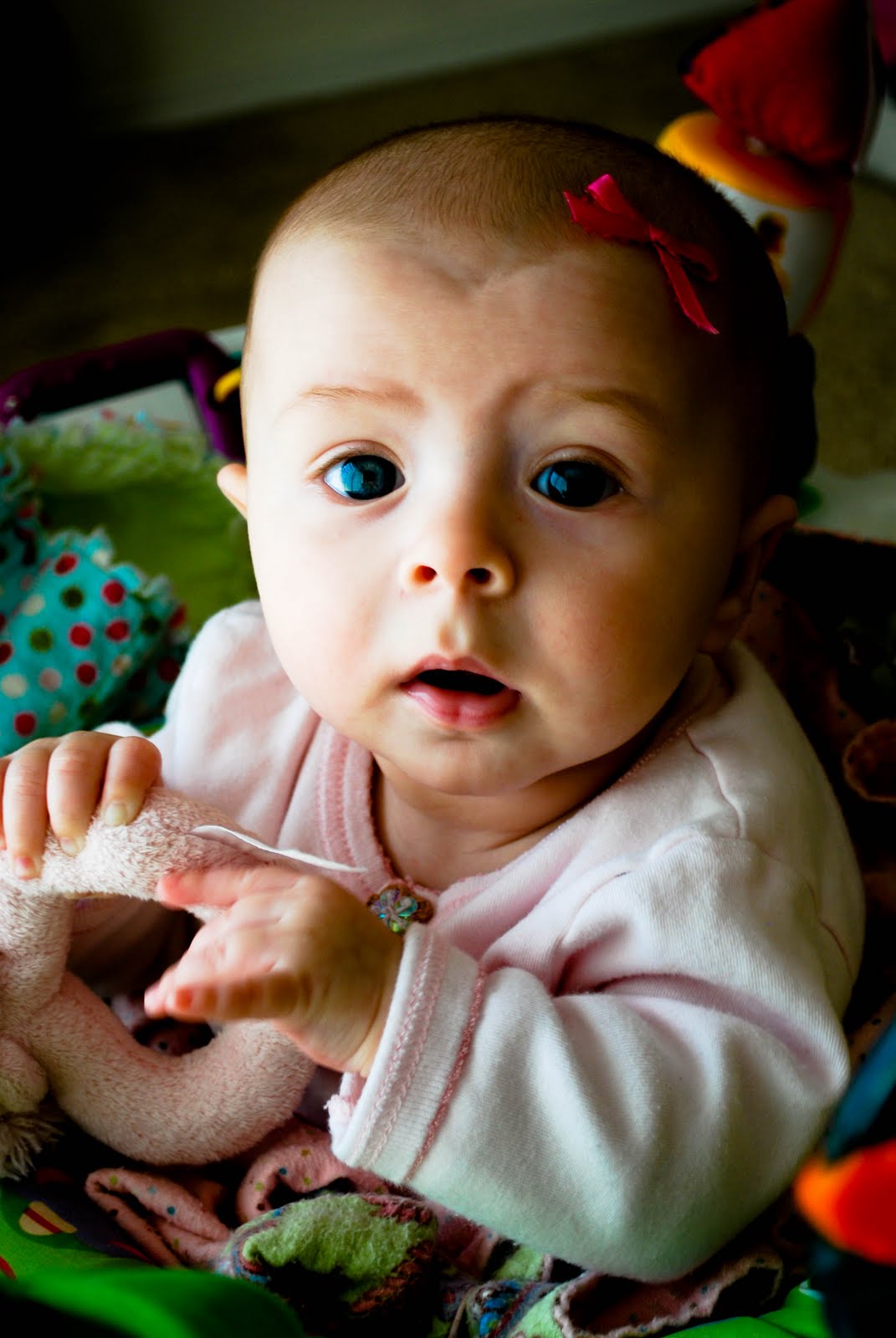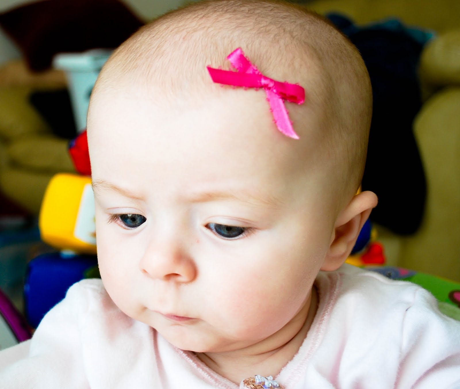 She is adorable, I just saw these pics on Facebook when John was tagged and had to comment! She reminds me of all my babies who had the best baldy heads with just a faint amount of hair! I love her hair bows, wish I would have taken to using them more with my daughter when she was young then maybe she would tolerate now that she is 2!