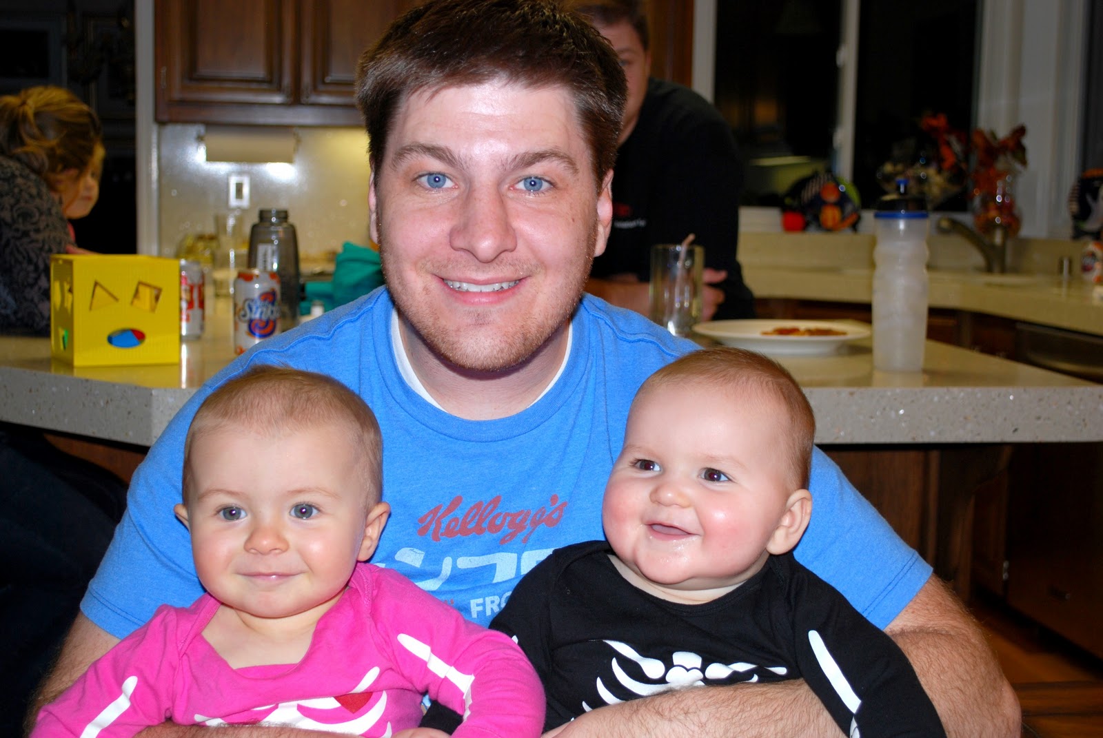 Sean with the babies. Matching bones pajamas!