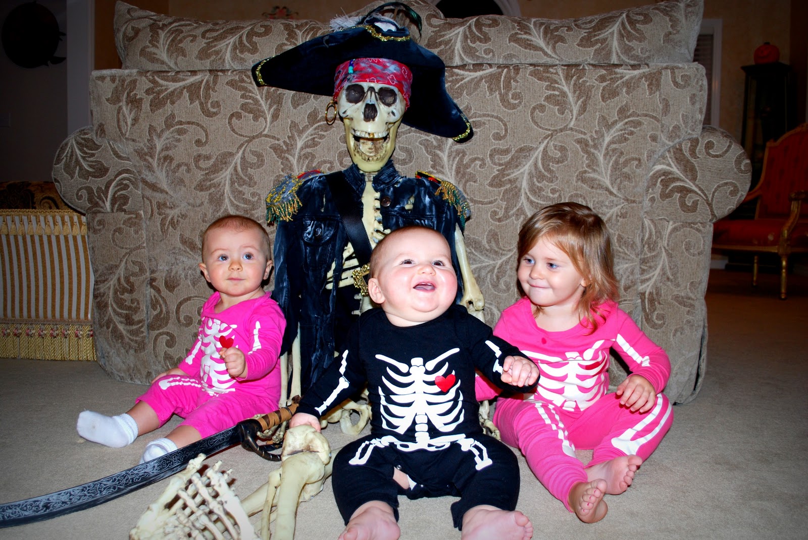 Cousins with Pirate Pete. No we are not at Disneyland. Just at my mom’s. Halloween is her favorite time of the year. Naturally, she has a fully dressed skeleton in her living room.
