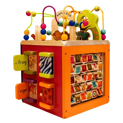 Isabelle received this as a gift for her birthday and she has LOVED it. It has all this crazy sides and things that move around and wiggle. The little beads on the top move back and forth, there are hidden wooden animals to slide around- it has kept her totally enthralled. Plus, the best part is that it is NOT HIDEOUS. It’s cute even! Exclamation point! I’m sure it would be great for a younger baby too- help them pull up and stand, work on those tiny calf muscles.