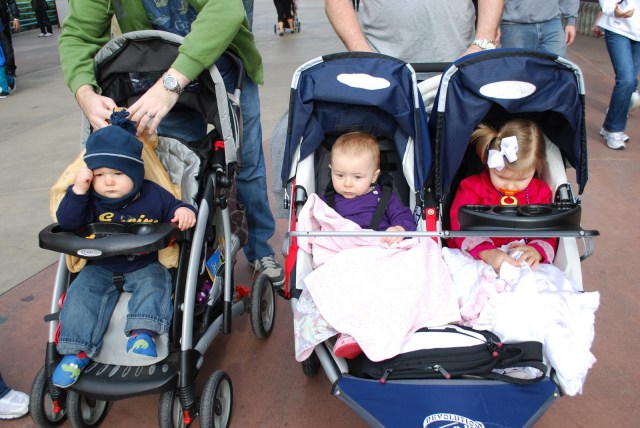 This is how we rolled. Madilyn brought her double stroller so she could sit by Isabelle, and then baby Kira (or Jake, in this case) could ride in the single stroller. Worked great, except when Isabelle wanted to take a nap- this girl likes her space. She kept pawing at Madilyn like “Hey, leave me alone, I’m gonna sleep now.”