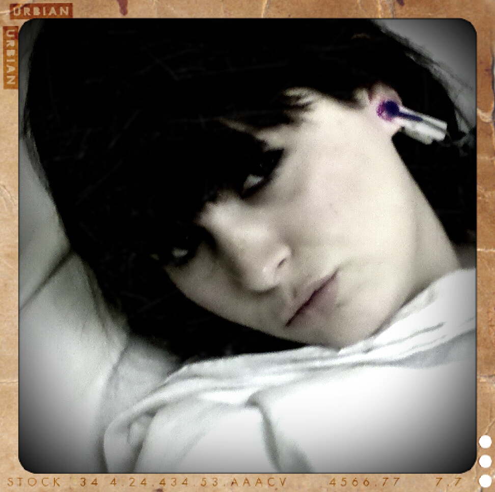 Me, post op, fancy monitor earring courtesy of Nurselady.