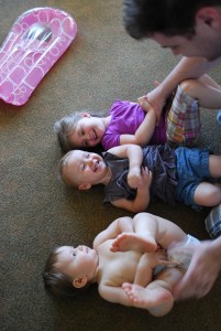 Probably the best part for Isabelle was having Madilyn around 24/7. When she woke up in the morning, we’d pick her up and she’d say “DOWN.” And point to Madilyn’s room. This is Isabelle’s first ponytail and matching hair bow. It lasted all of about ten minutes.