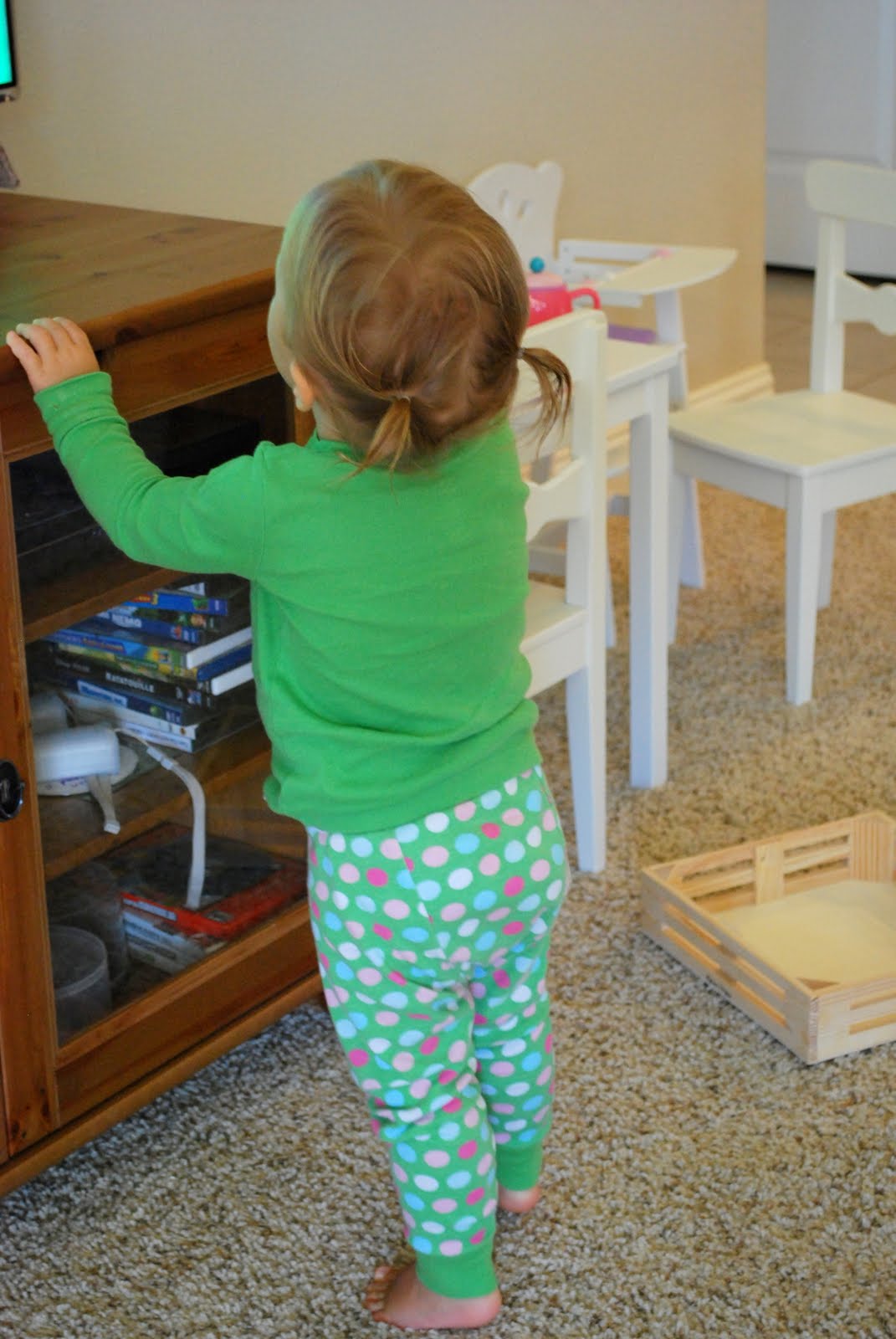 I literally put a jellybean on the tv stand to bribe her to stand up and hold still so I could take her picture. Mother of the year.