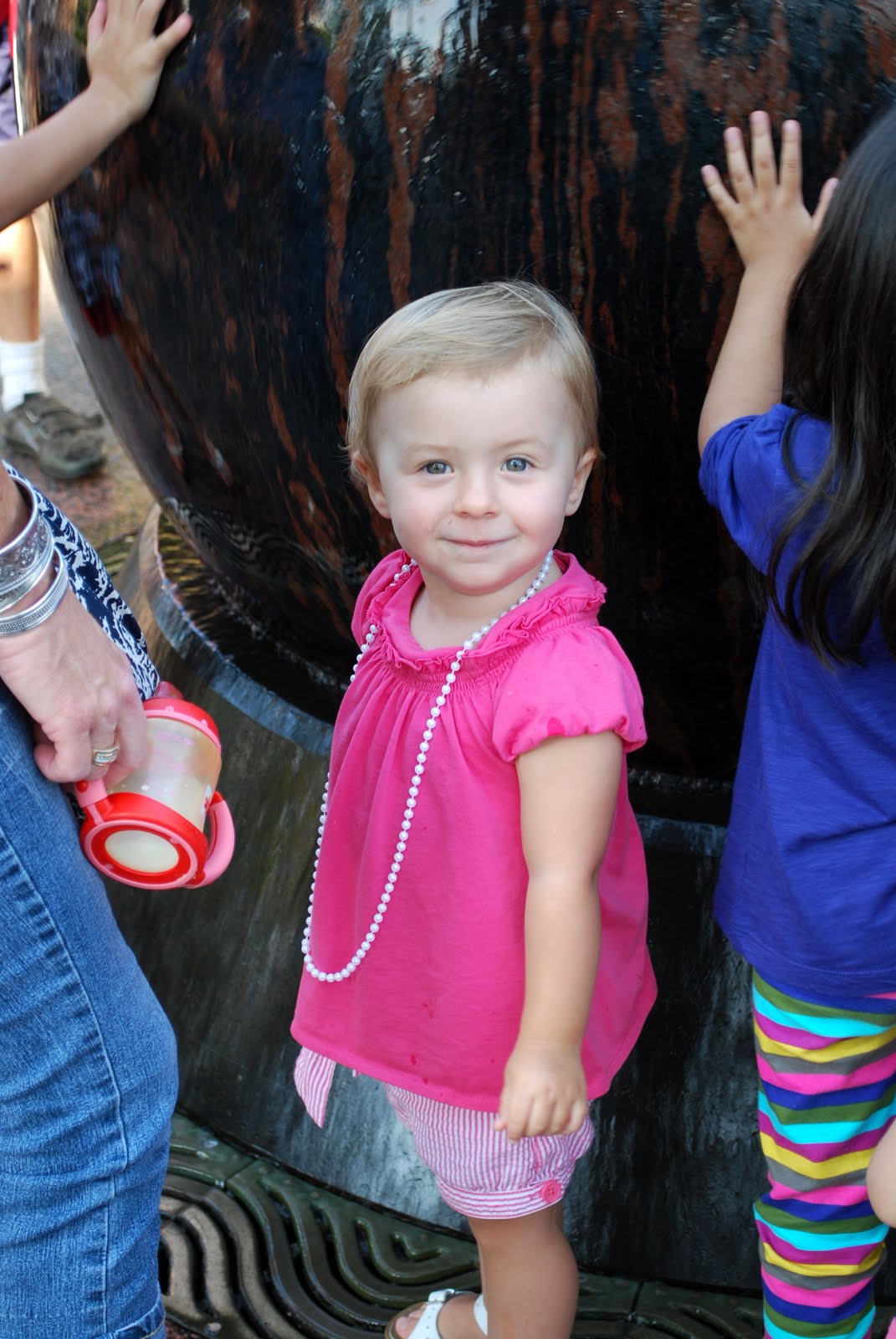 There is this giant ball over by space land or whatever its called. Future world? Sean is going to make so much fun of me. Anyway, this giant marble ball is suspended in water and the kids had a great time playing it in. It was about four and a half trillion degrees outside so Isabelle didn’t mind getting a bit wet. And yes she wore her pretend pearls the entire day.
