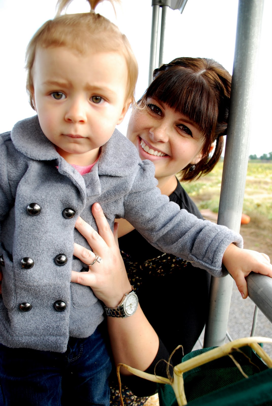 Wagon ride, post pumpkin picking. Isabelle: not to certain about it.