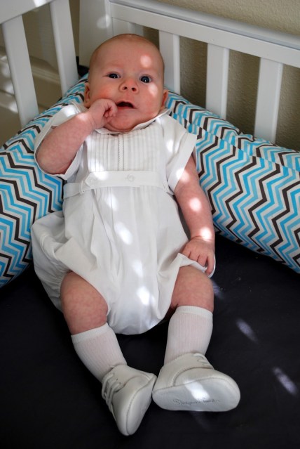 That night I found his knee highs in a box in the garage. OF COURSE RIGHT WHERE I LEFT THEM. Curse word curse word curse word. So later I dressed him up again so I could take pictures of how cuuuute he looks in his complete outfit without the pressure of being late or having a broken dress or dealing with a toddler throwing a fit.