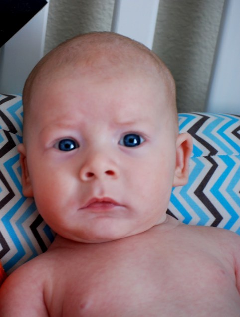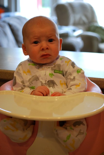 He is wearing size 3-6 month clothes, size two diapers, and is 13 pounds and change. We had to take him in to see his pediatrician last Monday because he lost his voice. Have you ever heard a hoarse baby cry? It’s like the saddest thing ever. I was concerned he was having some reflux issues and sure enough, he is. Our doctor recommended to feed him shorter more frequent feeds (just what every mom wants to hear.) So far he has done WAY better just by stopping to burp him every 5 minutes instead of every ten minutes. Hoping he grows out of it.
