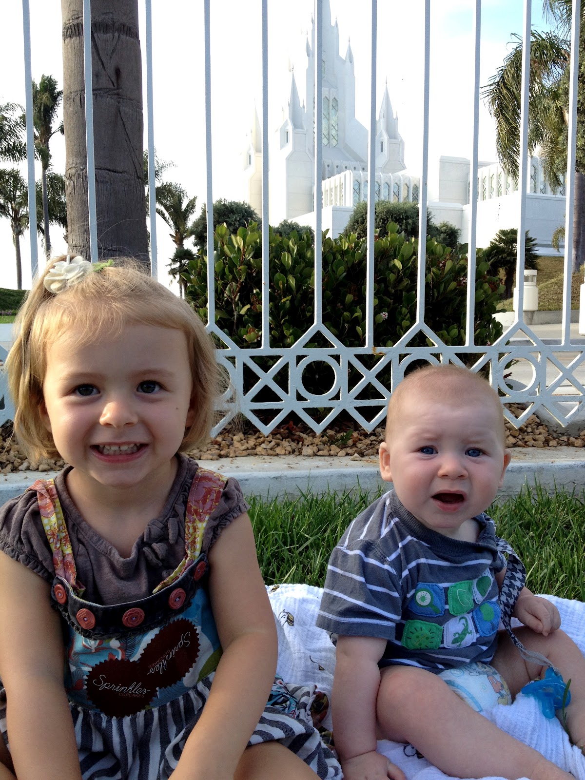 Too hot for pants. Also, we got zero pictures of Lincoln this day because I am an A+ mother and my camera battery died. This was the day Linc basically said I’VE HAD ENOUGH and wanted OUT and DOWN. We were exhausted and so hot at about 4 and despite my Sumsion instincts to close down the park, we called it an early day after a five dollar ice cream cone. Both kids fell asleep in the car so we drove up the coast and saw the ocean, found a SPRINKLES bakery and packed a picnic for the San Diego Temple. Total win.