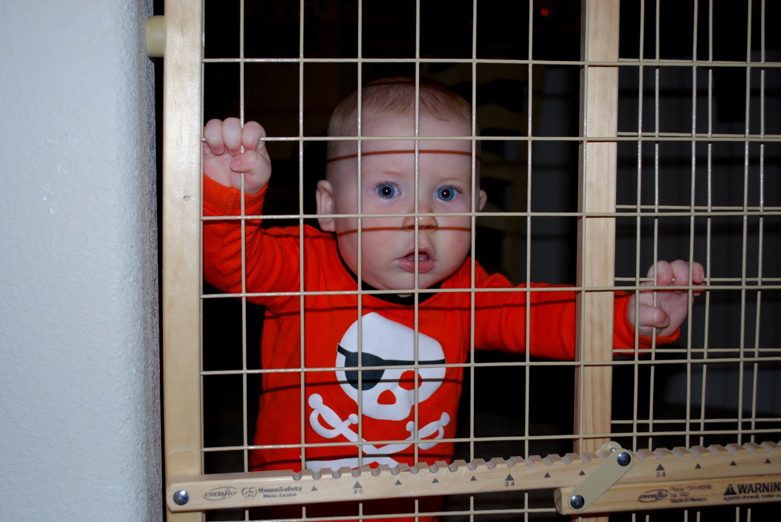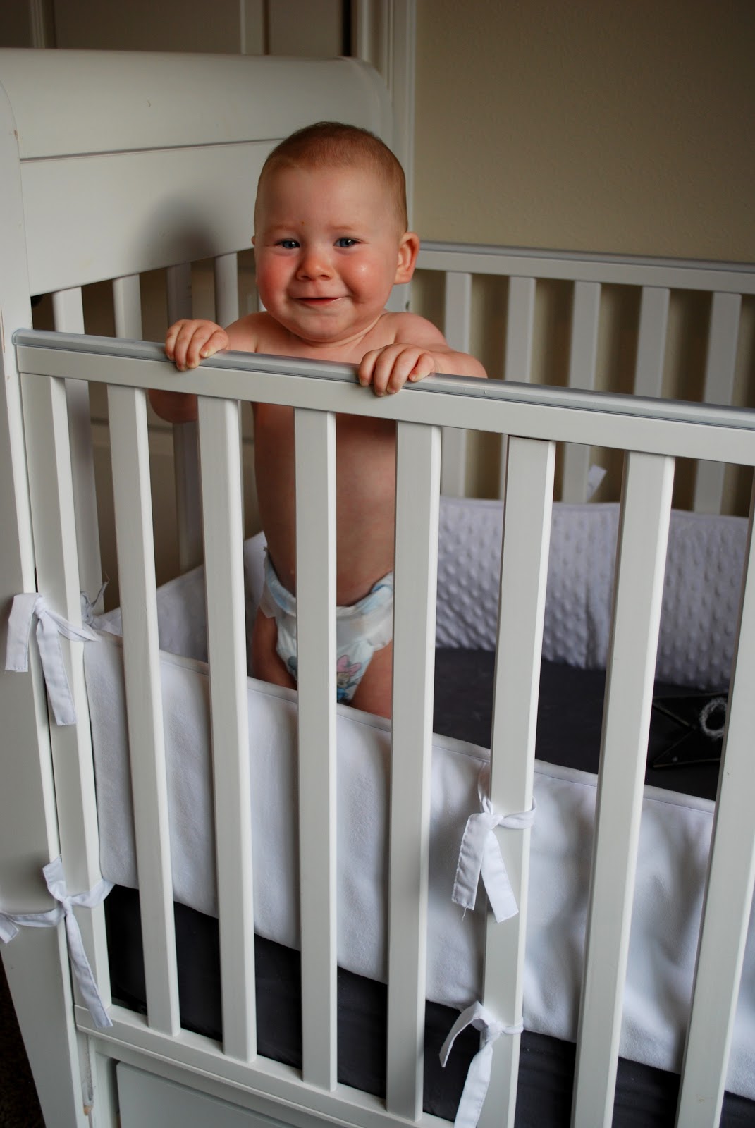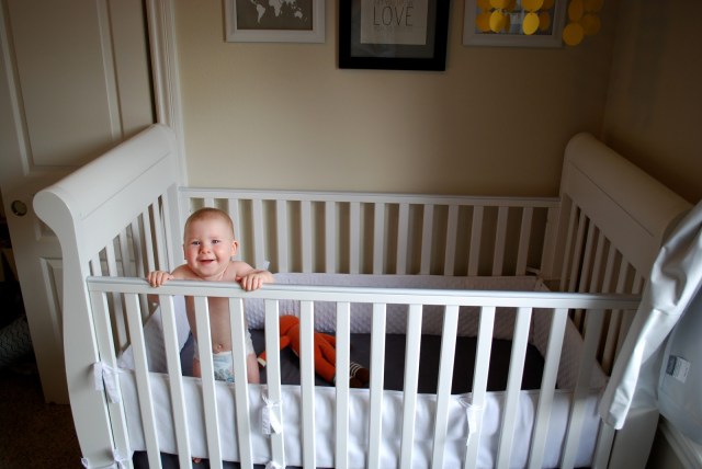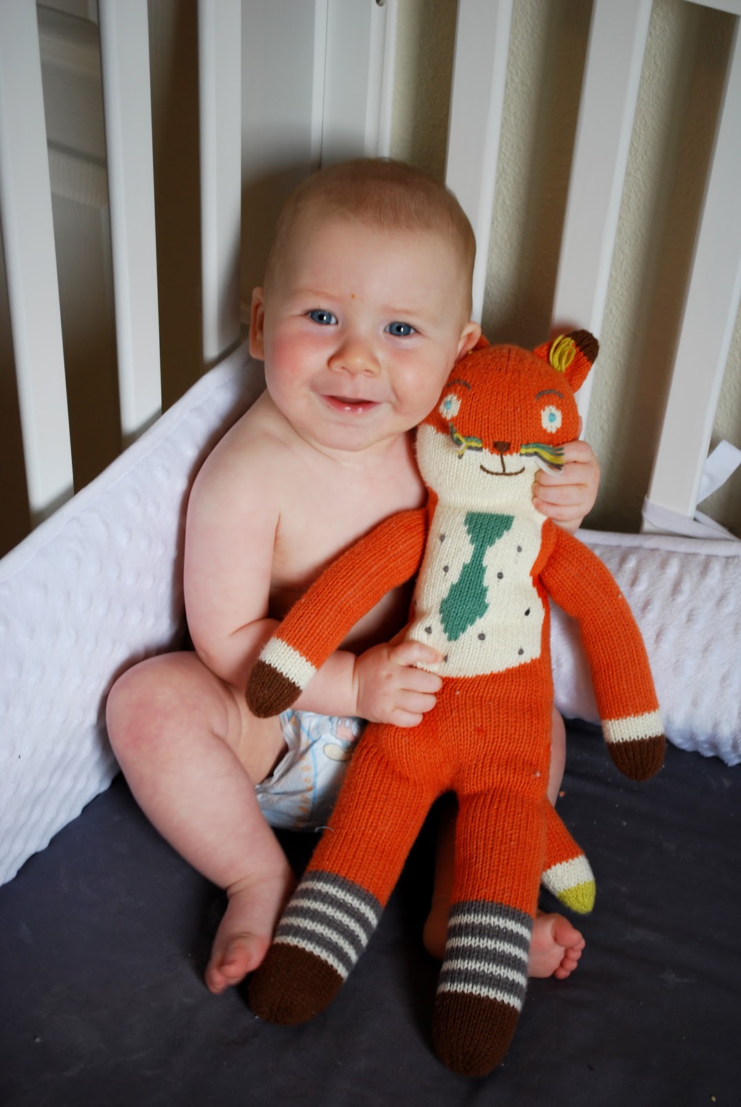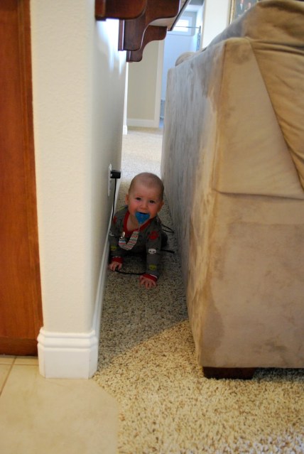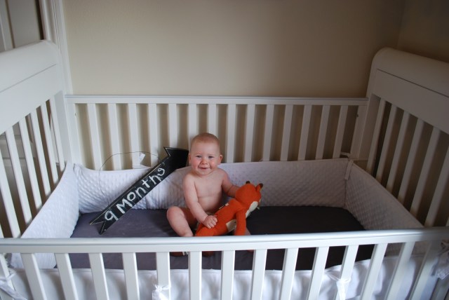 Linc learned a lot this month. He was just barely learning to crawl and now he is a master crawler. Can get everywhere, even through the blockades we set up to keep him in the family room. Stairs? NO PROBLEM. Sunday we were at my parents’ house and he went up the entire flight, like it was no big deal. It’s so cute when he crawls, I can hear his little hands slap slap slap on the tile. He is pulling to a stand on basically anything- the wall, couch, fridge, any thing he can grab and stand up. Which is super fun but also sometimes a hazard? Like tile floor and a soft baby head don’t mix that well? He seems to be less sensitive than Isabelle was, I bet its all that man baby testosterone. It’s a good thing we lowered the crib when we did…