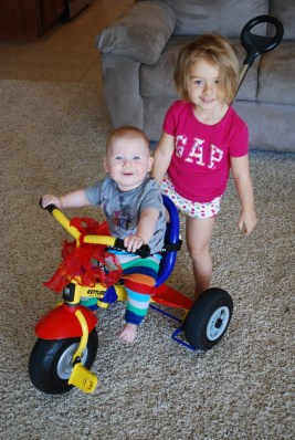 Isabelle and Lincoln are the best of friends. He is always looking for her, and wants to be doing whatever she is doing. We were doing puzzles on the kitchen table and he kept crawling and getting stuck under all the chairs because he was trying so hard to see what Iz was up to. Did I mention he is obsessed with Olivia? Like, totally attached to it. Always wants to carry her around in his mouth like a little dog. We put it on the counter, he crawls to the counter and tries to get it. He loves it. Isabelle is not amused though..we got one for him that is similar to Olivia but he hasn’t quite taken to it yet. He also loves to chase balls all around the house, around and around trying to catch them. We call him Linc, Linc-ers, Linc-y Loo, Linc-erton, and “baby winc.”