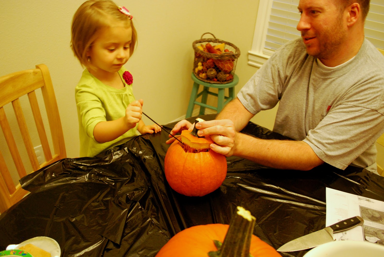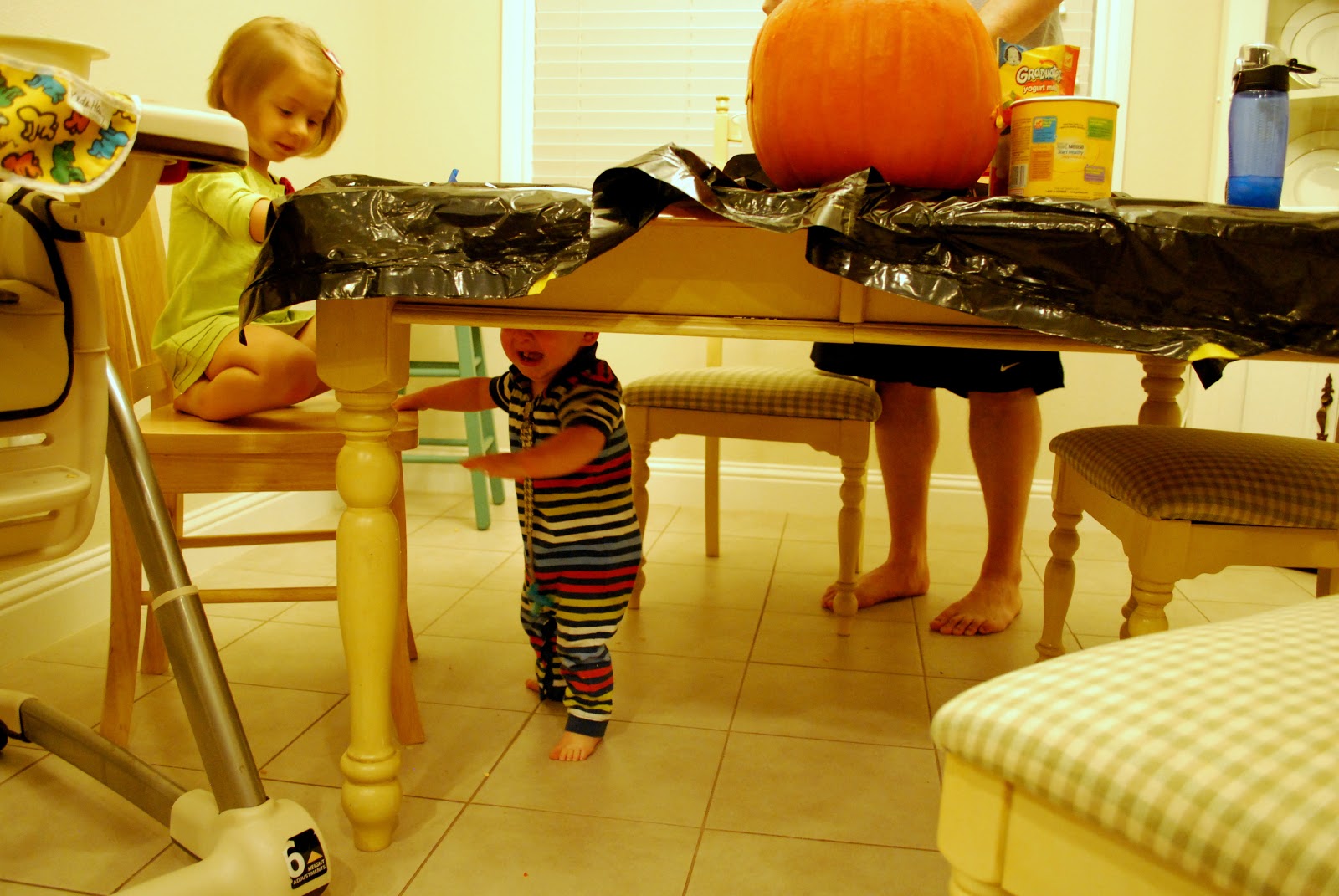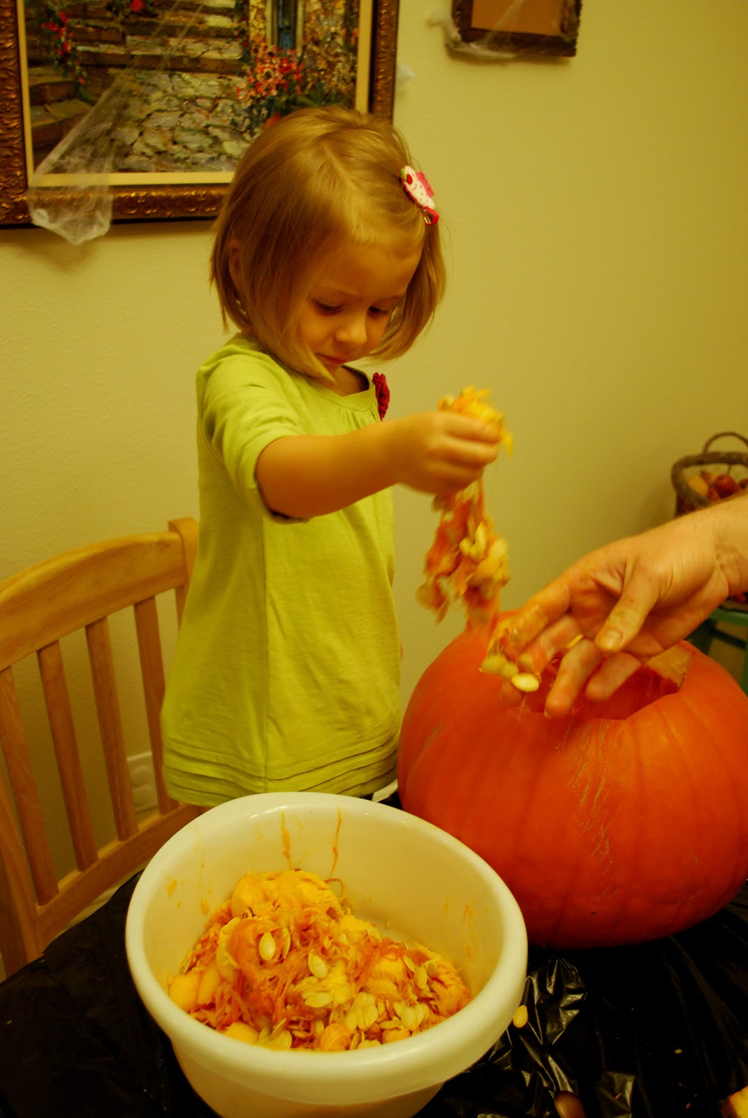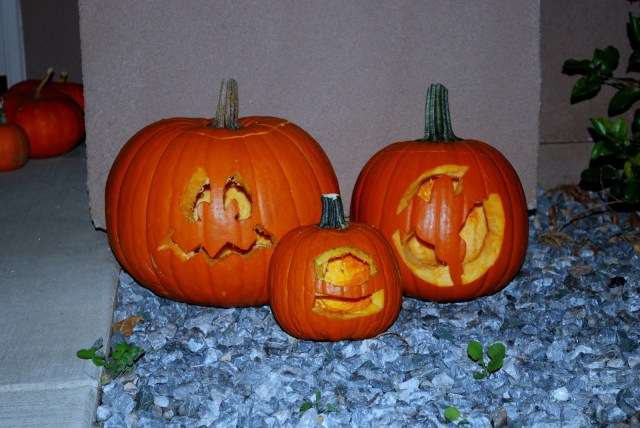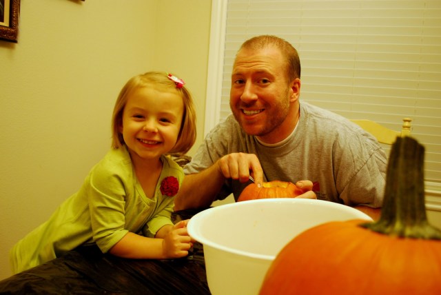 We kind of had to take turns doing the pumpkin carving because of this hot mess: