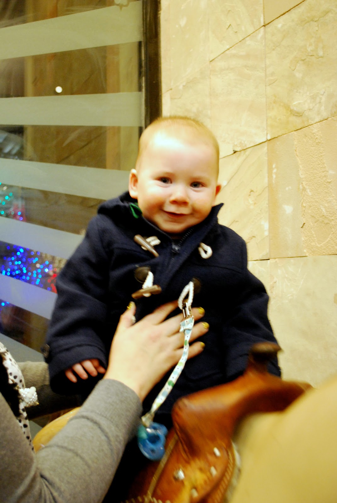 Why do people comment about baby socks? Ethan never kept his socks and shoes on. I had a lady say the same to me at Olive Garden once. YES, it was cold…at least I was trying to cup his little naked feet in my hands. Silly silly.