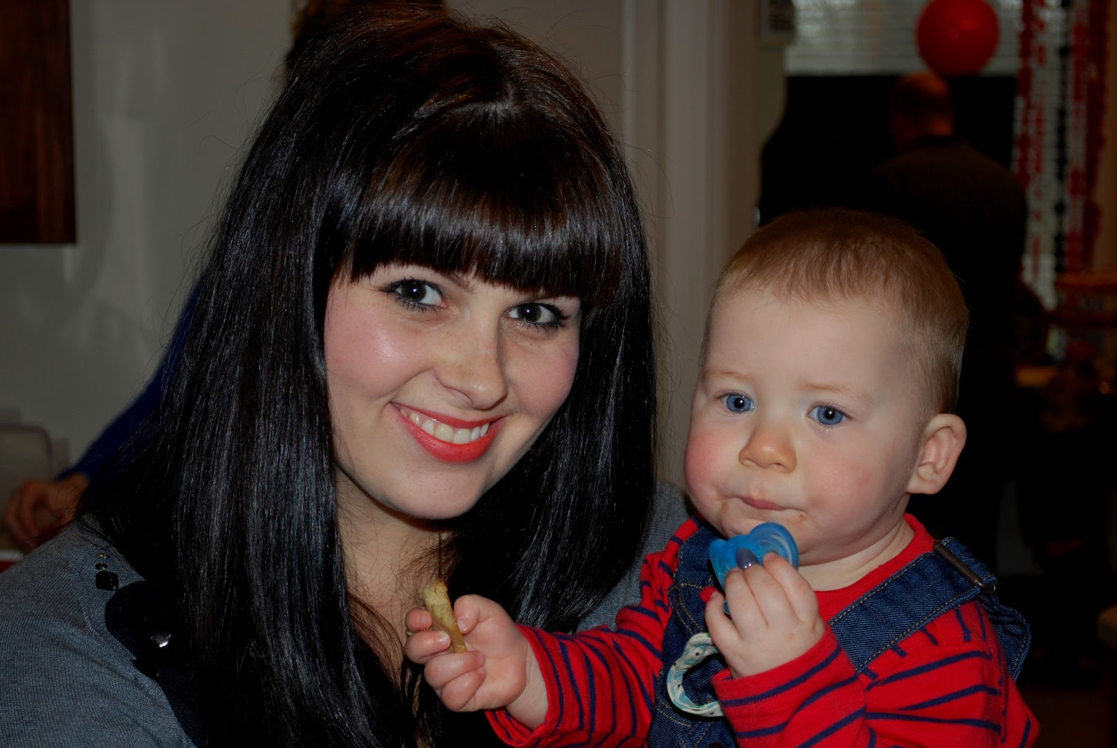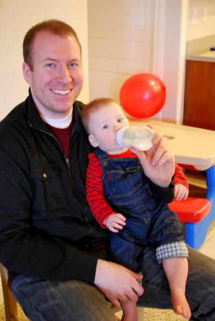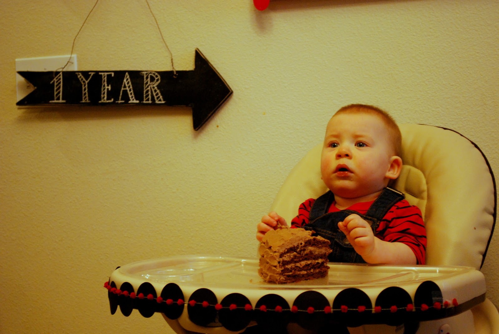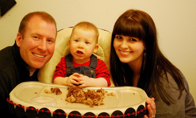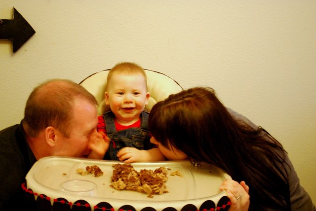 | After awhile we sang to Lincoln and gave him a piece of chocolate cake. I was fully expecting him to dive right in but I have to say he wasn’t thrilled. Actually I put some in his mouth and he spit it out. Clearly we are not related. Most of the frosting ended up on the floor.