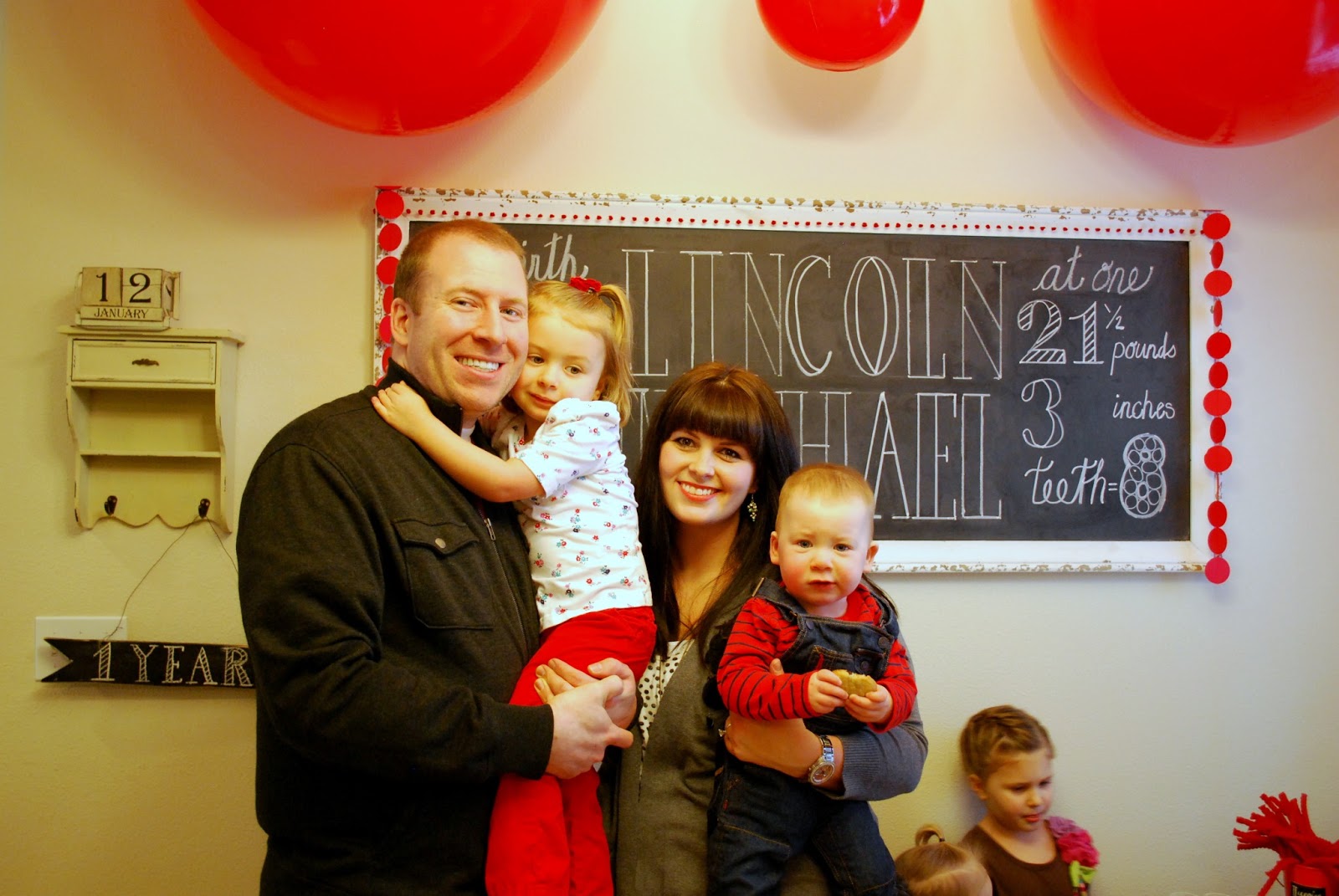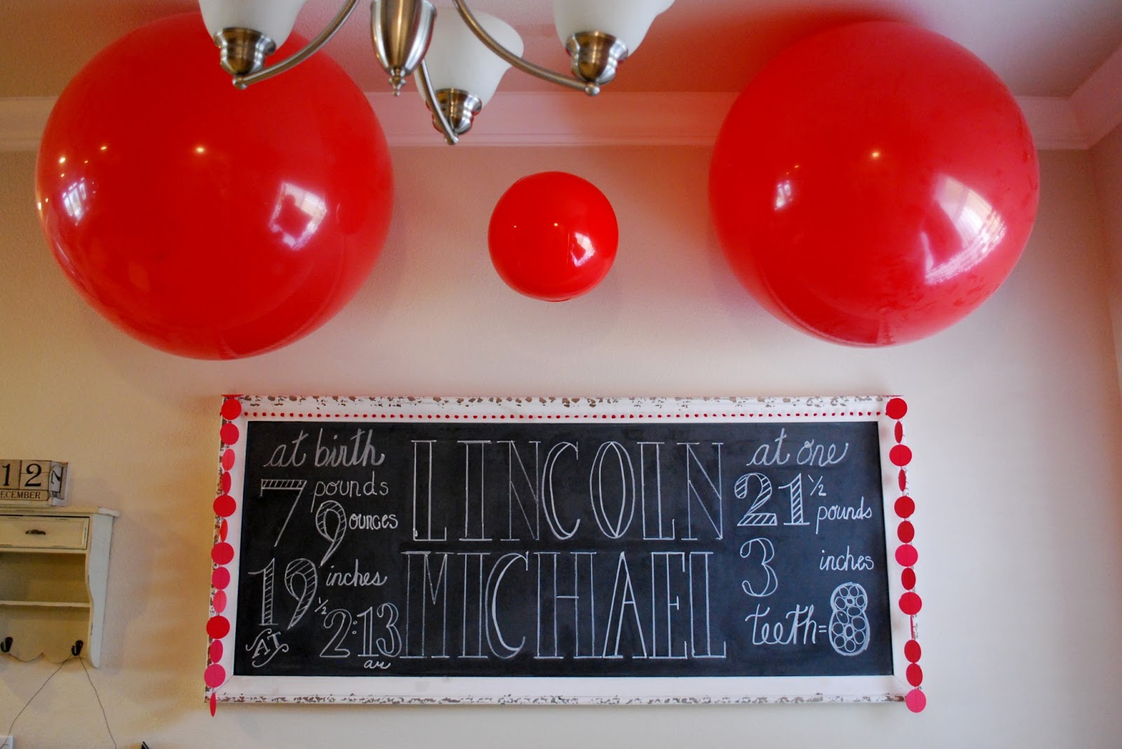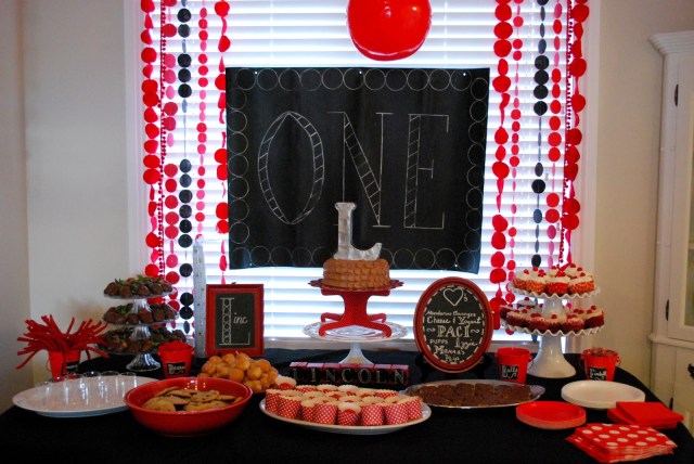 Saturday we threw Lincoln a birthday party to celebrate his wonderful first year. When I was trying to decide on a theme for his party, I was going over all of Lincoln’s favorite things… more than anything he loves to play/throw/bounce balls. So we did a big red ball party with chalkboard accents. Also this is a major photo overload. (I always say that?) Major, major.