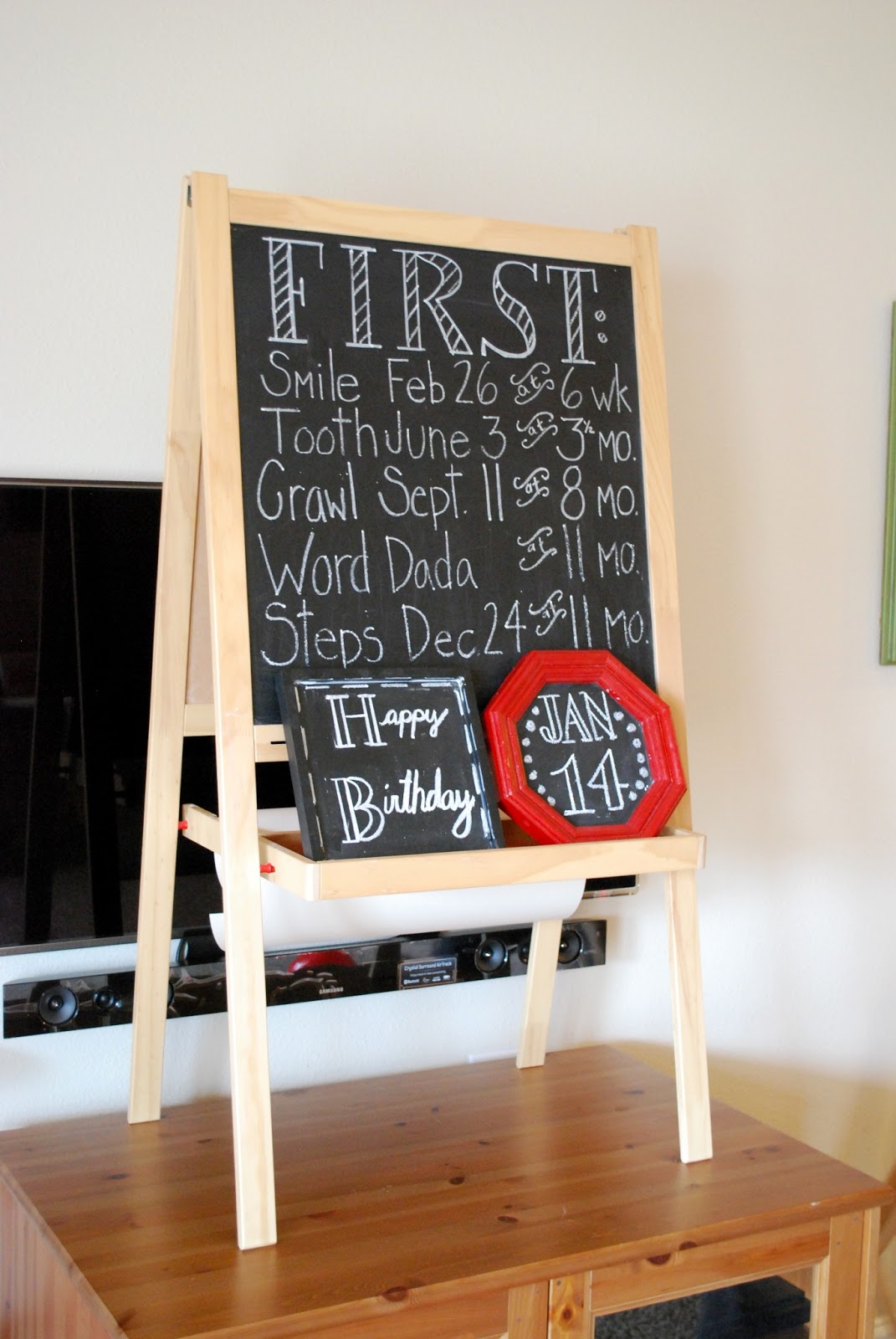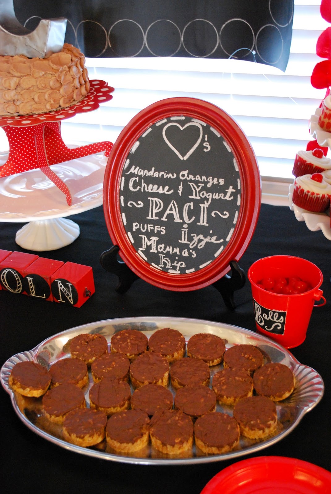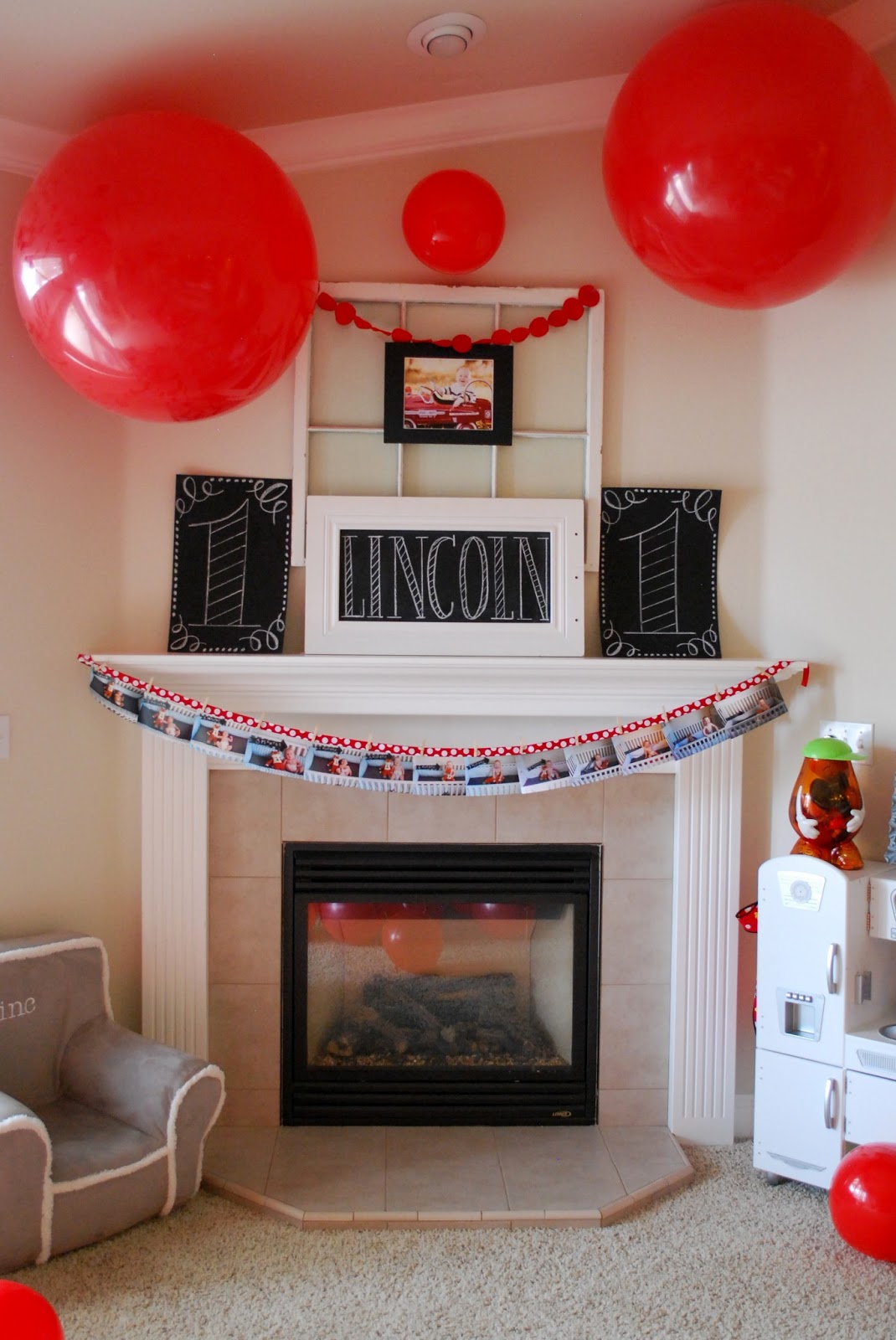 Saturday we threw Lincoln a birthday party to celebrate his wonderful first year. When I was trying to decide on a theme for his party, I was going over all of Lincoln’s favorite things… more than anything he loves to play/throw/bounce balls. So we did a big red ball party with chalkboard accents. Also this is a major photo overload. (I always say that?) Major, major.