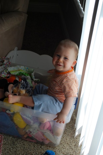 Probably to no ones surprise, Lincoln is stubborn. I’m noticing this as a theme in my children. He is very strong willed and will definitely let you know what he wants. He is still tricky to feed- something that he devours one day he won’t touch the next. I just put a bunch of stuff on his tray and let him eat what he wants.. then I sneak bites of nutritious foods in when I can. Loves oranges, cheese, sweet potato chunks, and any kind of fruit. And cookies, naturally.