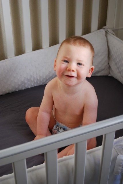 Lincoln at 12 months: 21 1/2 pounds, thirty something inches long, and a whole lotta personality. Wearing size 12-18 month clothes, size 4-5 diapers. Tops the charts on the crazy cute scale though, I just want to kiss his face all day long.