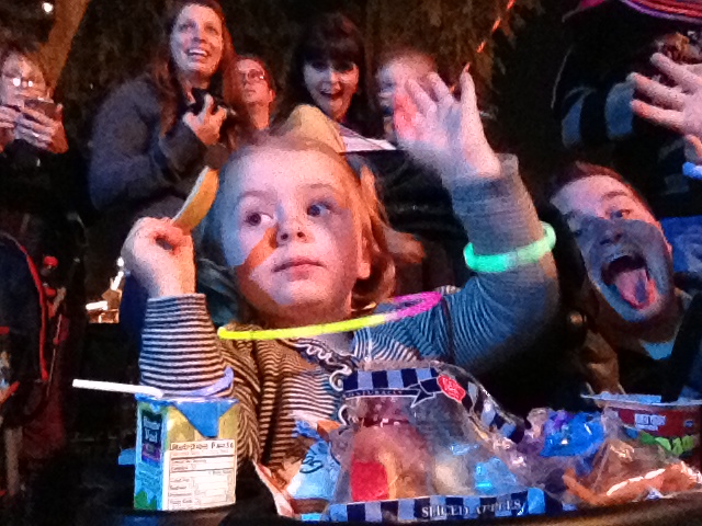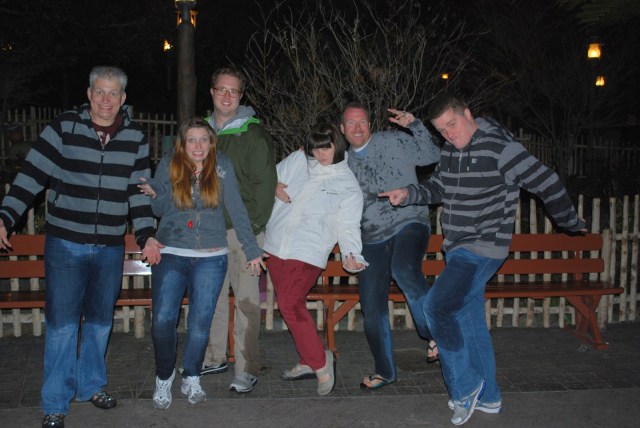 So. We make it a point to ride splash mountain and close out the park one night… despite the 40 degree weather. It’s been a couple years since I have done this one (pregnant, nursing, pregnant, etc) so I was super looking forward to it. We drew numbers for the front seat of the log and dad lost. Sorry dad. Poor guy rode in front and got drenched, looks like he has denim chaps on top of his jeans. Jazz was equally as soaked. I must say…. I got very lucky (or else I have secret techniques..mwahaha.) only got a few spots on my leg.