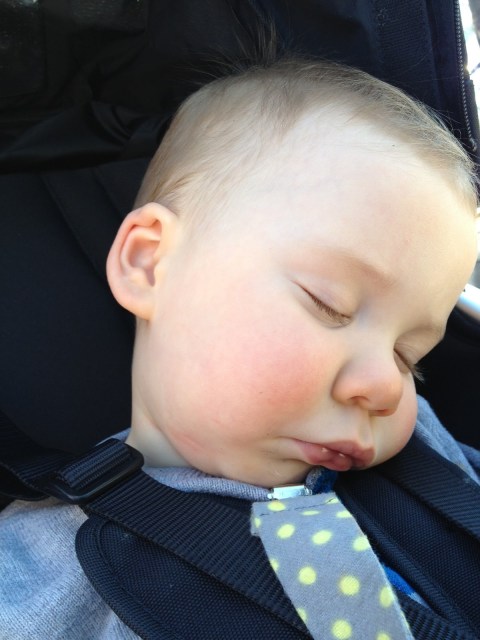I just kept thinking he would conk out in the stroller… every so often he would peek his face out to be like, “Hey I know you thought I was asleep in here but guess what I’m not! Surpriseeeee!” I finally gave up- 20 minute nap all day was delightful.
