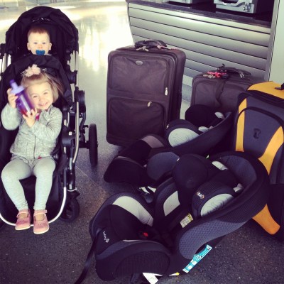 So this time we flew instead of drove. Found $49 tickets each way, so all four of us flew for under three hundred bucks. Can’t beat that. Was it worth it? I’m not so sure… Jazz was convinced it was easier, me on the other hand, not so much. Look at all the crap we had to haul. Me pushing stroller, dragging a suitcase with a carseat slung over my shoulder. Just regular mom stuff, you know.