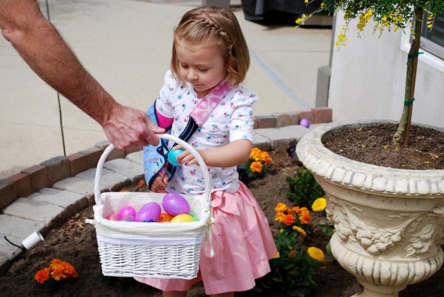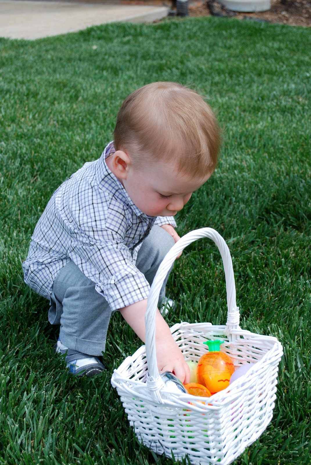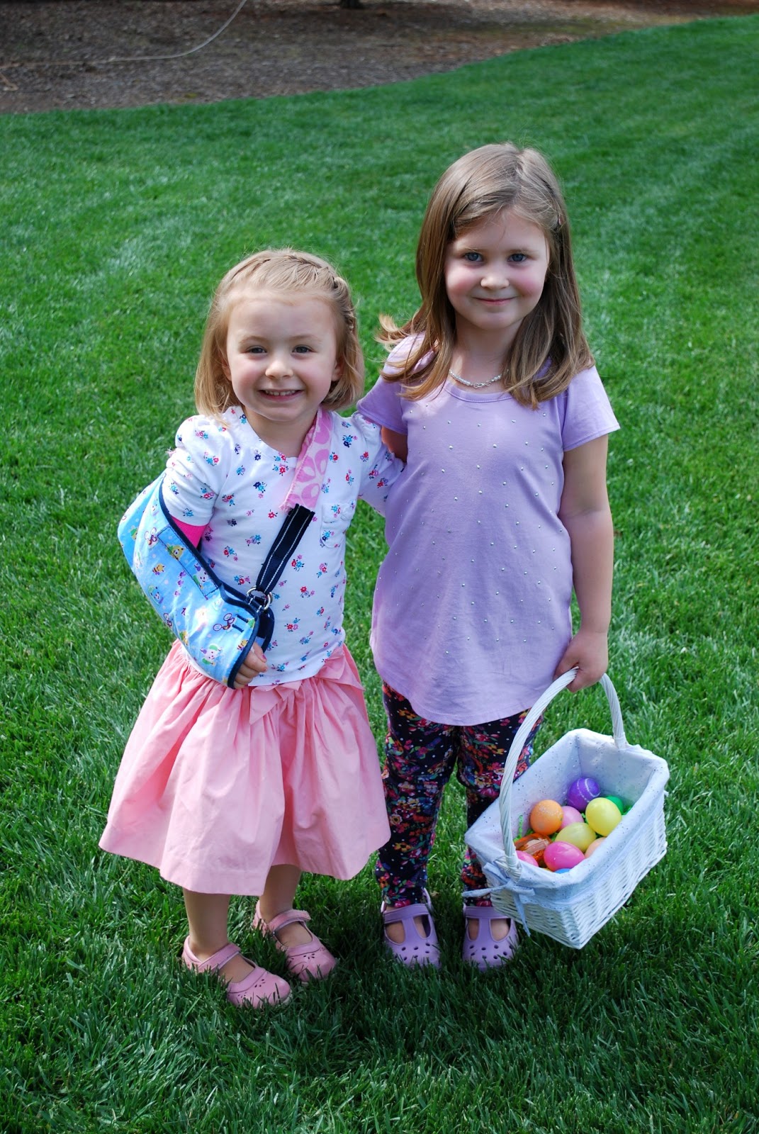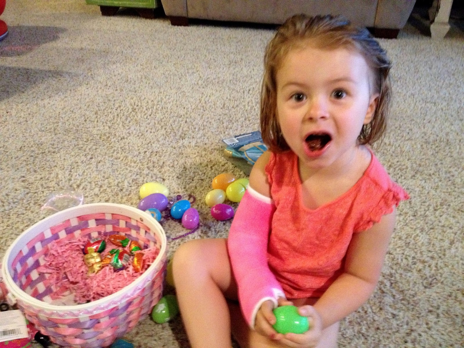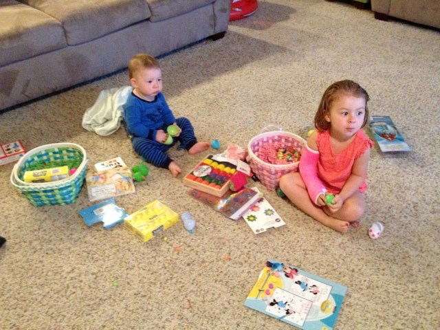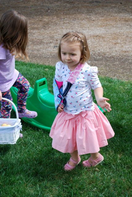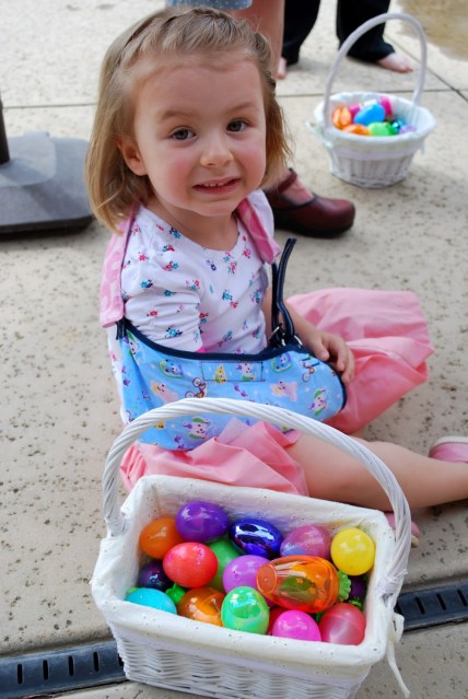 We’ve had such a great weekend with our friends and family. New babies and uplifting church meetings and super adorable kids and lots of treats… can’t go wrong. We had an easter egg hunt at my parent’s house with the whole crew yesterday. They had their entire back yard decked out with eggs and games and stuff to do, they are the best ever. Isabelle did awesome despite only having one arm. (Grandpa carried her basket.) Lincoln was more excited to play in the water and eat rocks. You know.