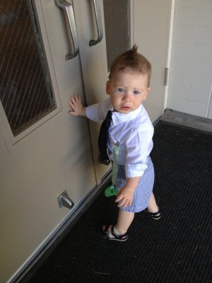 Finally, Lincoln looked a teeny bit Samoan for church on Sunday. White shirt and tie + sandals.