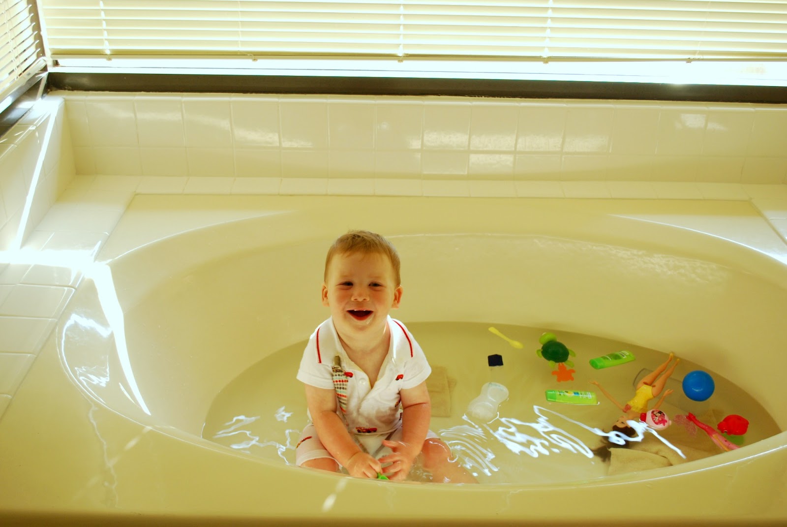 One morning Linc disappeared for a minute. He got too quiet, you know in Jurassic Park when all the birds stop chirping because a big dinosaur is about to burst through the trees? Too quiet. I came around the corner just to see him hike his leg over the tub and slide into last nights bath water. Totally happy even though it was cold, he was so angry when I had to get him out. SO ANGRY. Good moms leave the bath water over night, great moms always grab the camera when their kid does sneaky stuff.