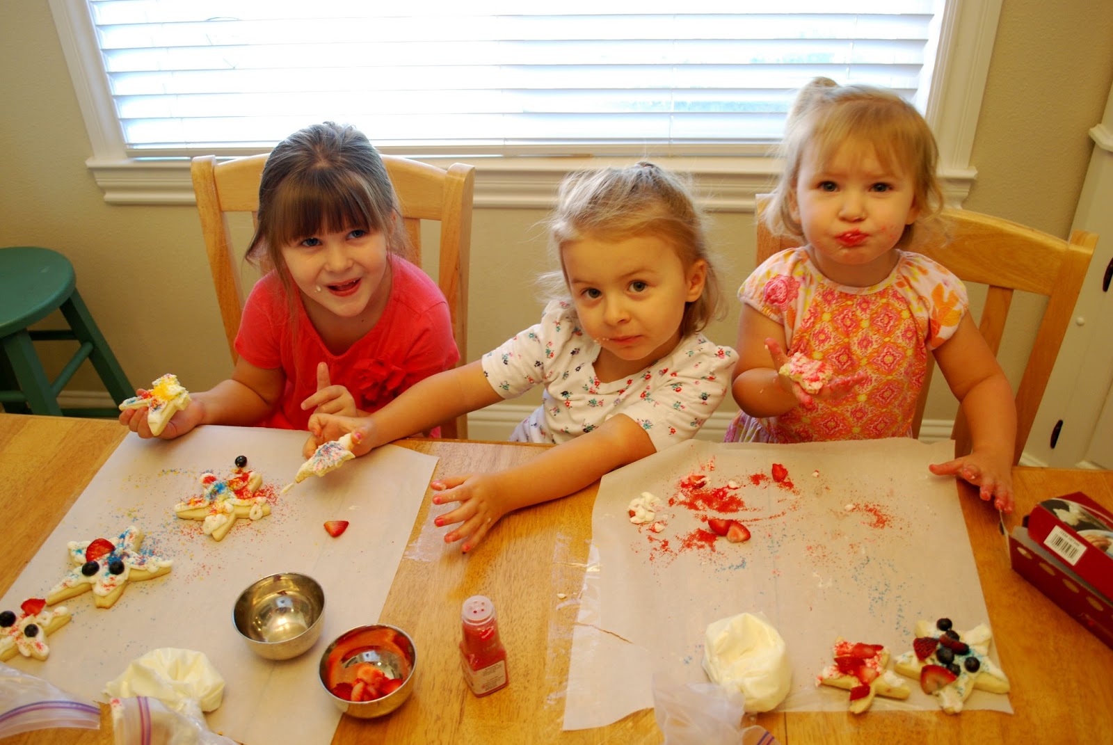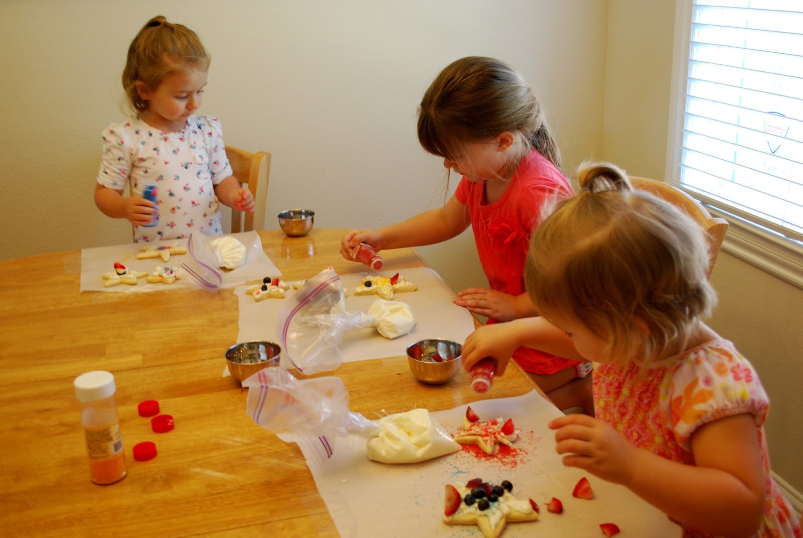 The next day we had all sorts of fun things planned including decorating sugar cookies. Me and Iz baked them the day before so I just put frosting into baggies, taped the tops shut and let the girls have at it. Linc mostly just ate frosting.