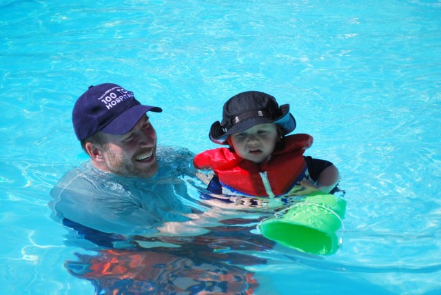 | Lincoln’s life jacket is a souvenir from 1988. Michael Sumsion strikes again. |