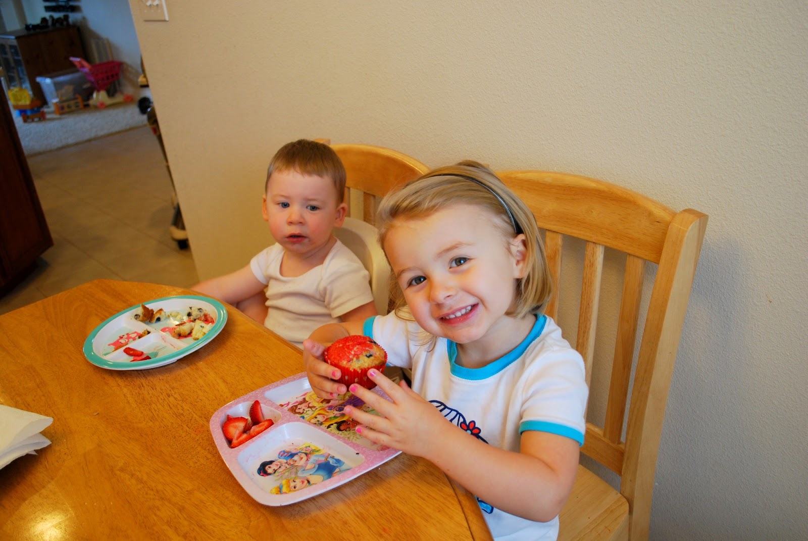 We made special muffins for breakfast. Blueberry. And Isabelle added red sprinkles to hers. Naturally.