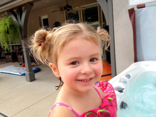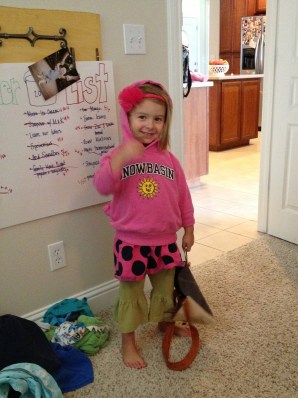 Oh she is great- 3 1/2 is such a fun age. She is so sweet and saucy at the same time- she wants to do everything herself and do it her way. In the morning she gets up before everyone else, often tiptoes around the house to find things she needs (including dad’s ipad.) and plays in her room until she hears us up. Often she is already dressed up in her tap shoes or a hat or also sometimes totally naked.