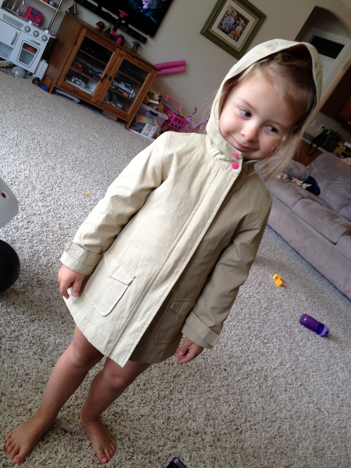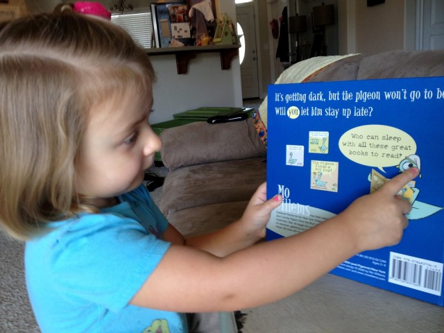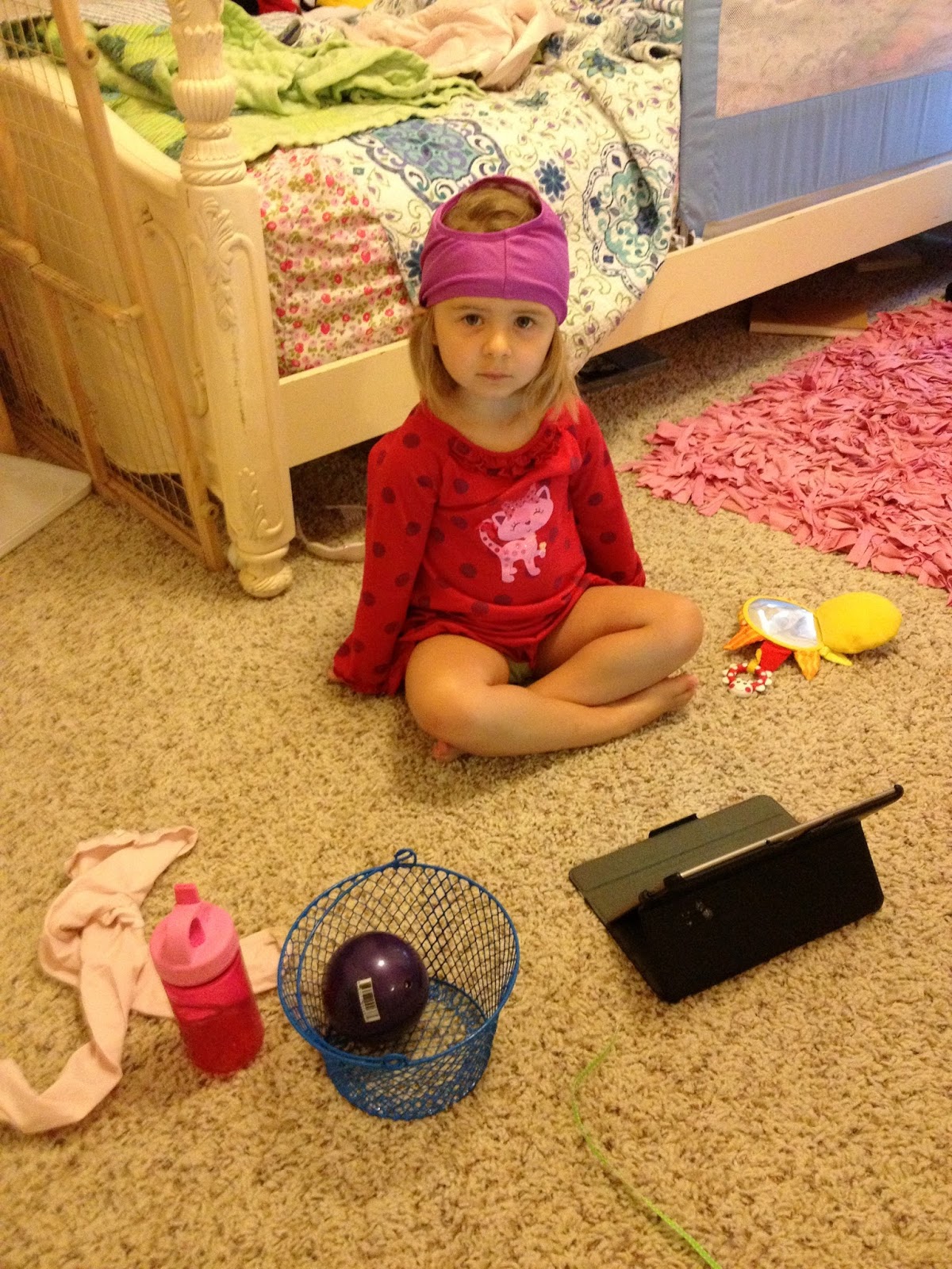 Every day she has about twenty minutes to read in her room before her nap time. It helps her unwind and get a little bit sleepy before she gets into bed. Most of that time is not spent reading but rather finding random crap to dress up in, and then she parades out to find me to show me. Makes me laugh every time.
