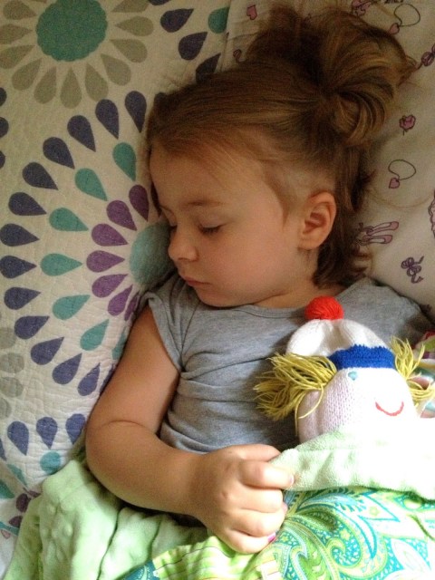 | supposed to be sleeping but HAD to tell me that she needs a “sweepy hat” just like the pigeon |