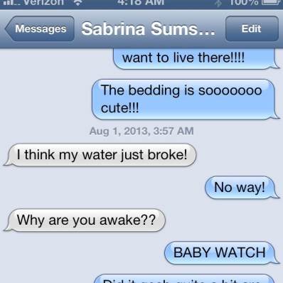 I love that you have her in your phone with her maiden name. I do the same thing. And what a beautiful little girl… also, pretty sure you and your siblings have the exact same taste in names as I do. Congratulations to Sabrina and the family!
