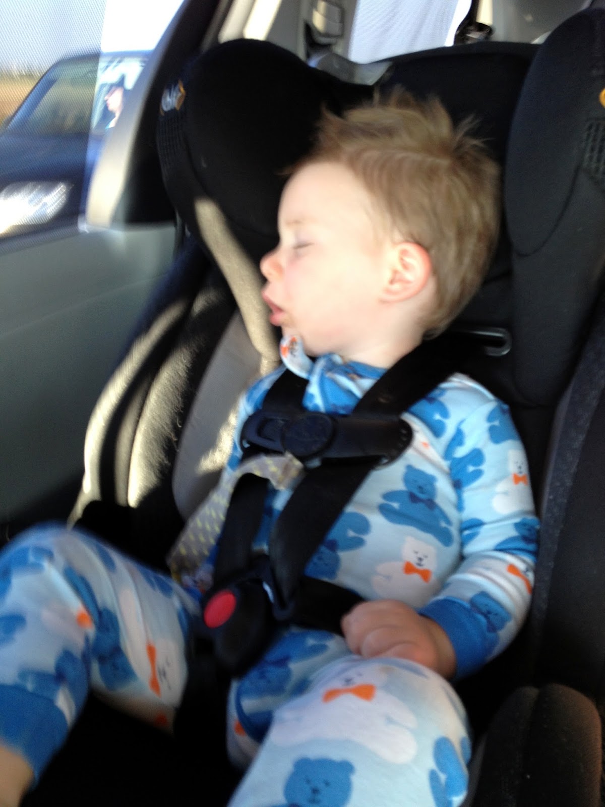Linc barely napped.. just the 20 minute drive to Roseville so when he was dry, fed, pajammied and back in the car for the trip home… he sacked out. Love his fluff hair.