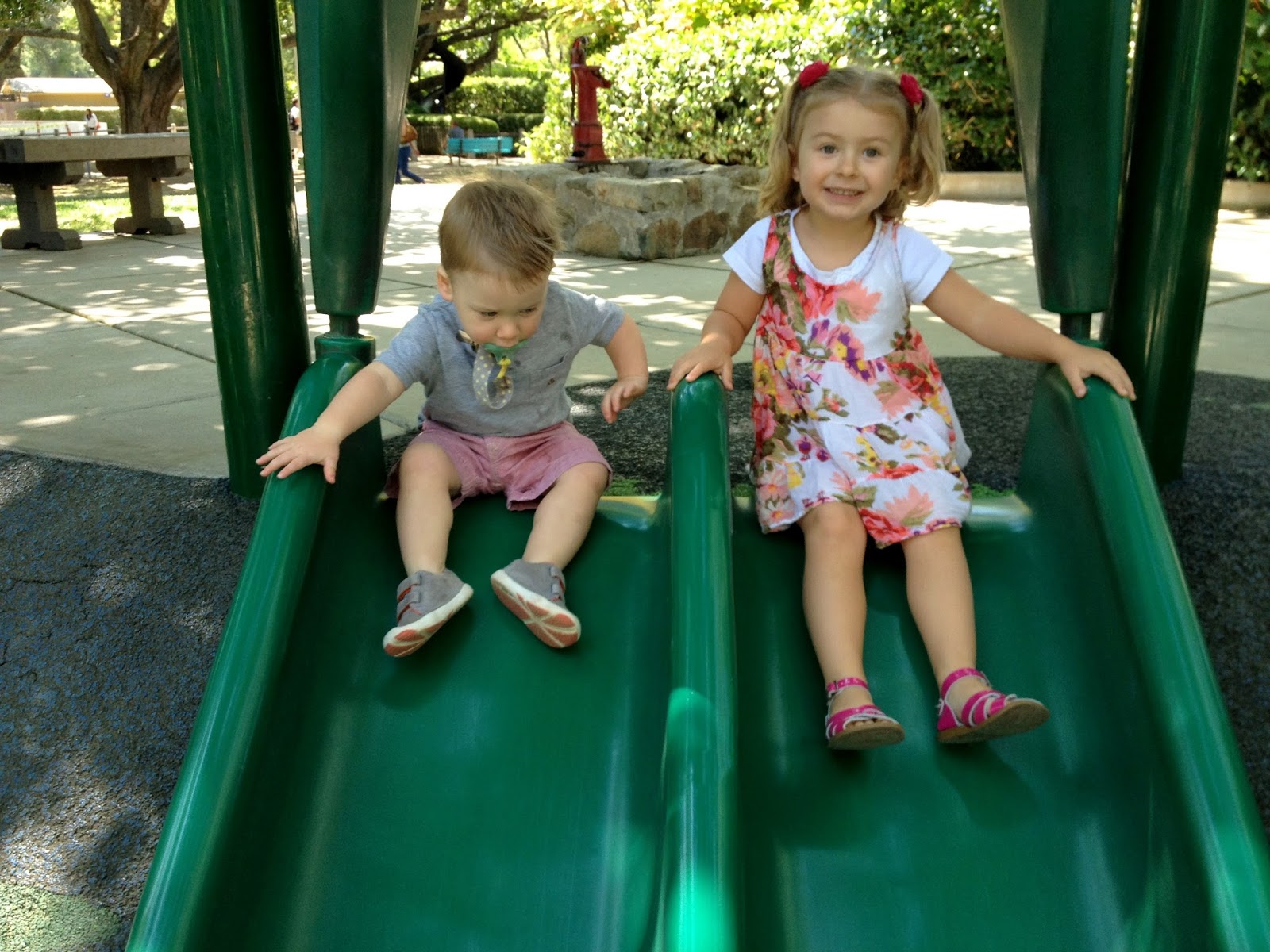 Then the kids “napped” while I drove to Roseville and shopped the Galleria with them in the stroller. I love back to school sales… the kids are basically set for winter. Not having great shopping in Redding sure makes it fun to find the good stores out of town! While we were at the Rack across the street, I asked an associate if there was a park or something for the kids to play on close by- and she directed me over to the Fountains. Lincoln found a splash pad… game over. He went crazy, completely soaked in like 2 minutes flat. It was freezing cold in the shade, windy, water was like ice but he was SO HAPPY. People walking by stopped to watch him probably because hes so little slash hilarious. He just dominated that park. I was the white trash mom who let her kids run through with their clothes on, then I stripped Lincoln down. Didn’t even have towels. Keepin it classy.