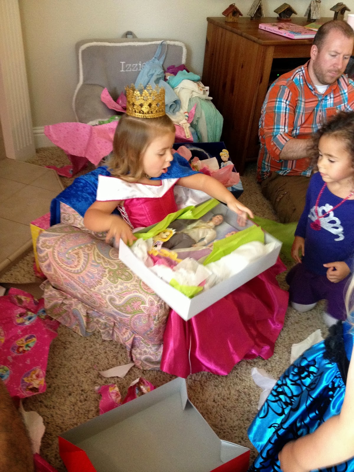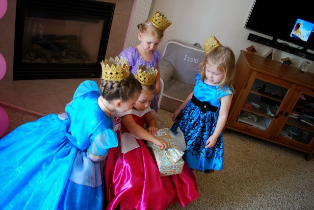 I think the best part of this party was that Isabelle GETS it. She understands birthdays and all the fun parts- she has been helping me get ready for a few weeks now. She looked so adorable in her Aurora dress, she loved the sparkly crowns we made. She loved all the pink decorations and the balloons. This is why it is fun for me- to see her face. Her eyes got huge when she saw the big pile of presents her best friends brought for her. She was so excited to blow out her candle, she has been practicing for days. Having a girl is so much fun, having Isabelle is the MOST fun. Four years ago I had no idea how she would change my life, she just keeps getting more…vivacious? exciting? hilarious? What a little personality she has.