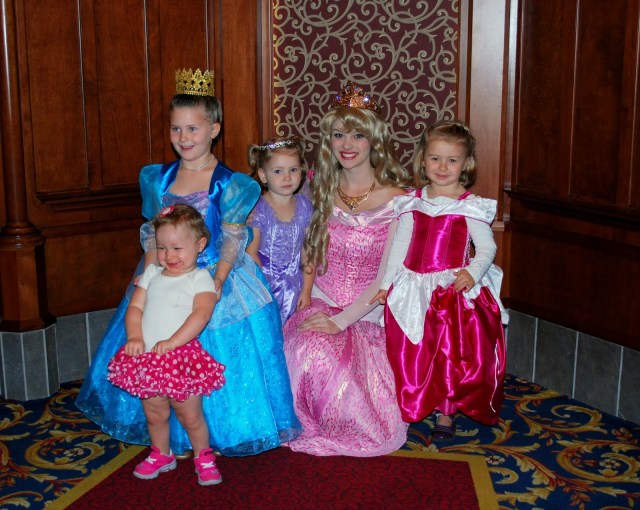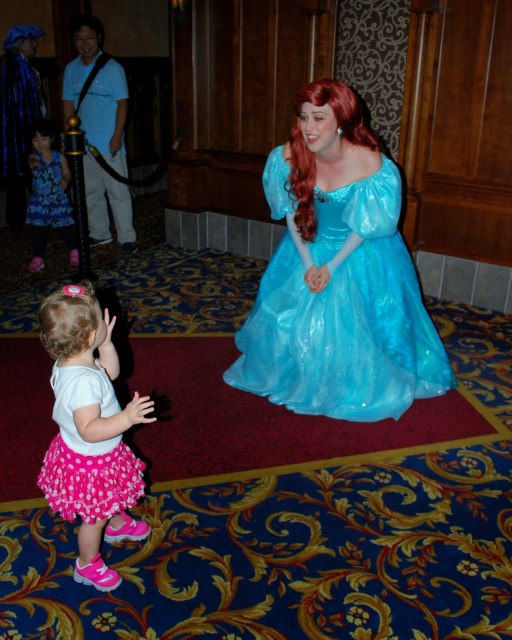 Okay so Sunday was deemed “princess day” for the kids- they all wanted to bring their princess dresses to meet the REAL princesses in so of course we did. You have to go to this early in the morning to avoid a long wait time- they just opened up this adorable new area just for the princesses kind of by the castle. So we got bedazzled and had to wait just a few minutes before going in to meet Cinderella and Ariel, but we didn’t know the who the third princess was. You get escorted in, take some pictures, talk to the girl, then move to the next princess. How many times can I type princess in this paragraph. Anyway, the girls were SO excited.