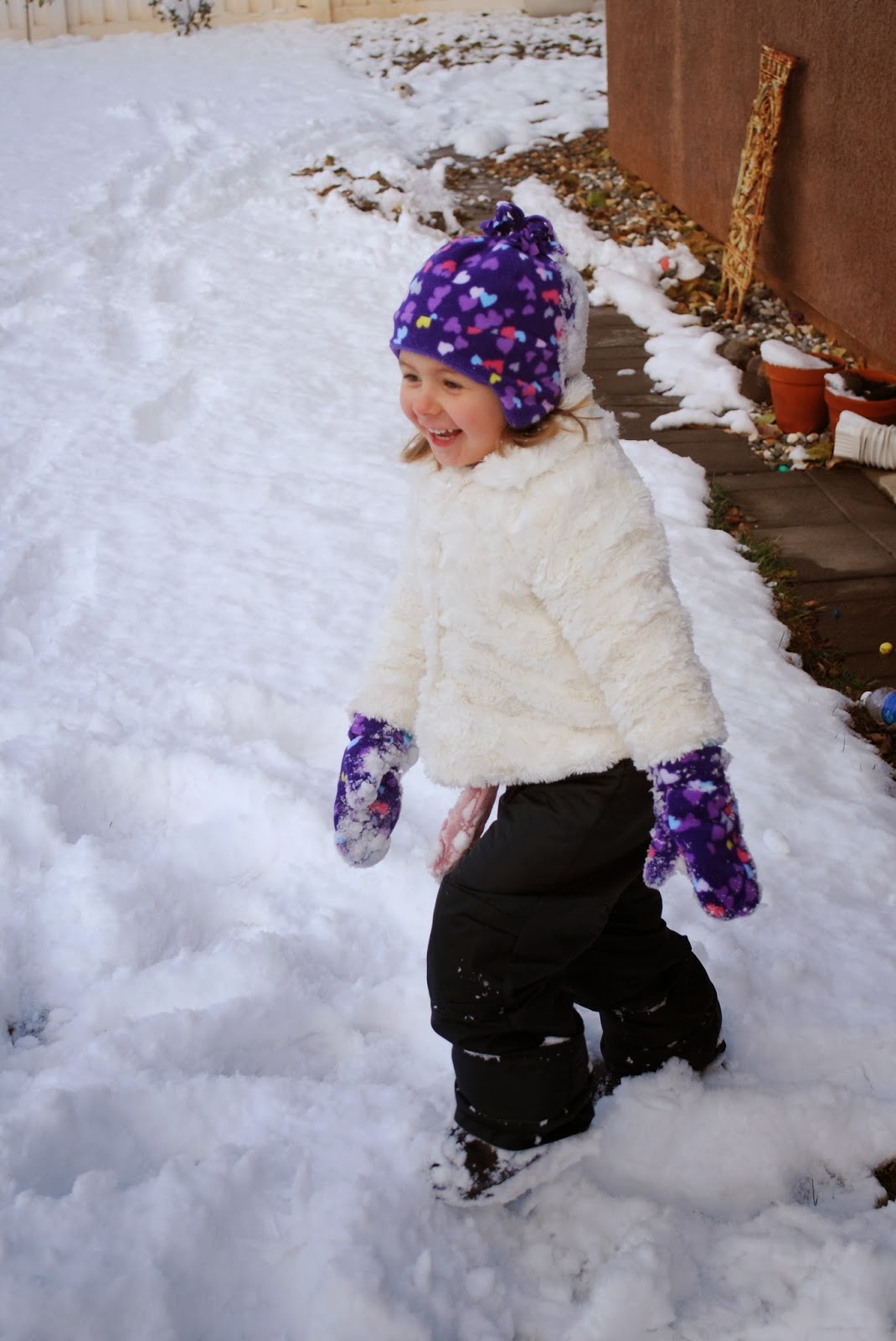 Saturday morning Isabelle came racing in to ask if we could go play in the snow. So after breakfast, we suited up and headed out. It was perfect weather- soft fluffy snow, chilly and crisp, but nice and sunny. And snow right in our back yard!