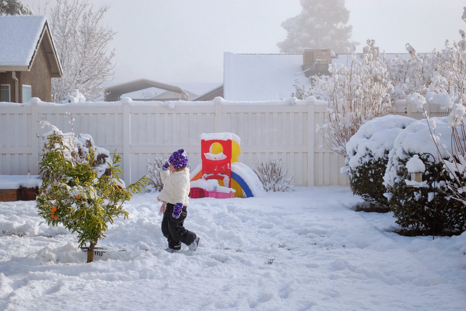 Last Friday, just during nap time…it started snowing. And it didn’t stop for hours and hours. That NEVER happens here- seriously the last time we got this much snow I was in high school? Maybe junior high? Anyway, for just a few days our little town was turned into a white wonderland. We loved it.