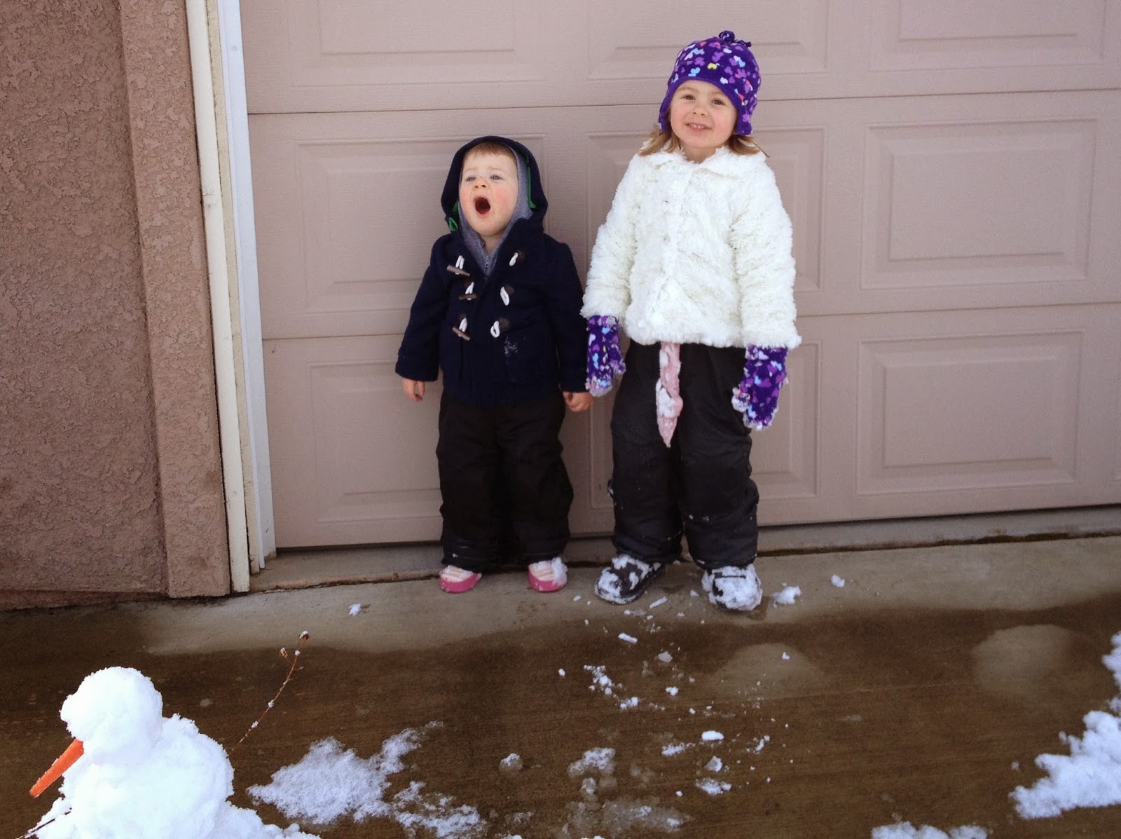 Sadly now our snowman is just a stump… most of the snow has melted and I keep telling Isabelle to hang on to those snow memories for TEN YEARS because that’s how long it will be until she wakes up to snow in her yard again. Thanks Canada for the cold front!
