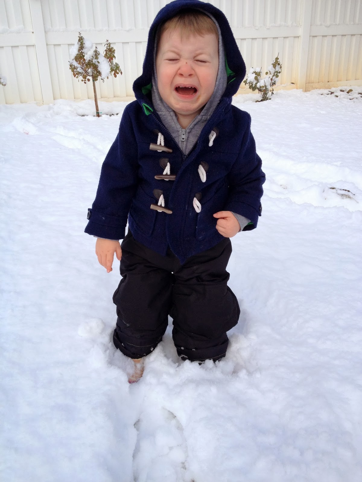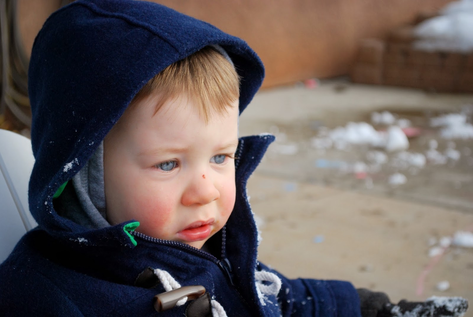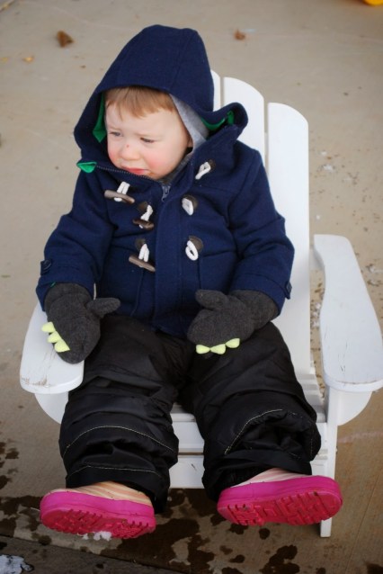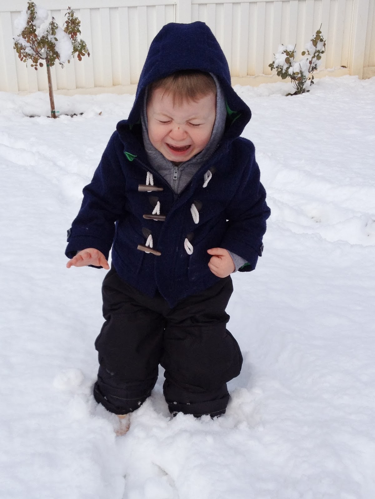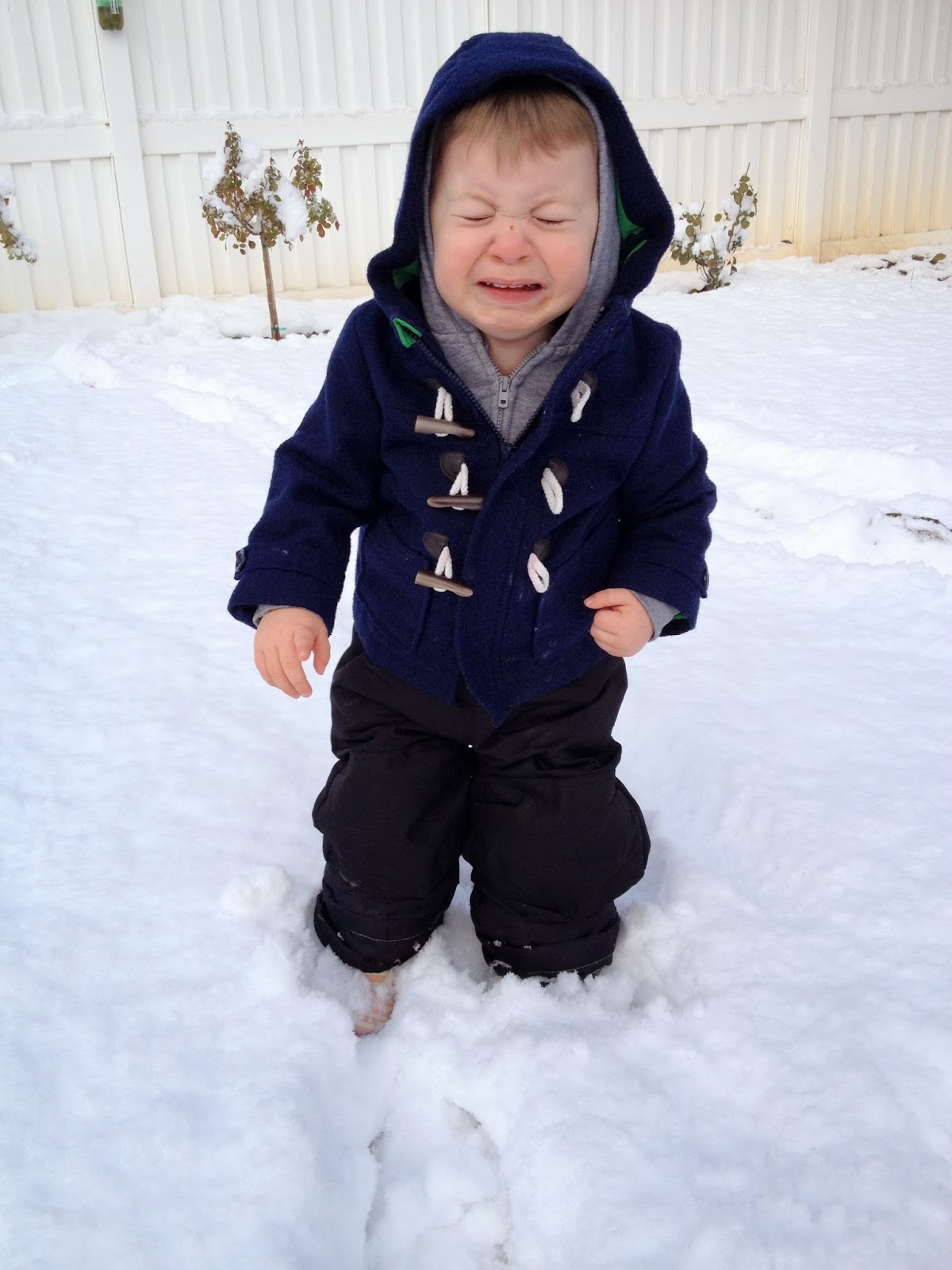 This is the best part. I got Linc all dressed and he was SO excited to get outside and play- GO GO GO he kept saying. Anyway, we open the door and he stops short of the snow. Jazz even cleared him a little path so he could get going but he was like WHERE IS MY GRASS! WHY IS IT SO COLD HERE. THIS IS THE WORST. CRY.